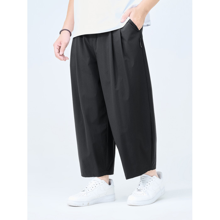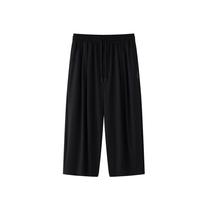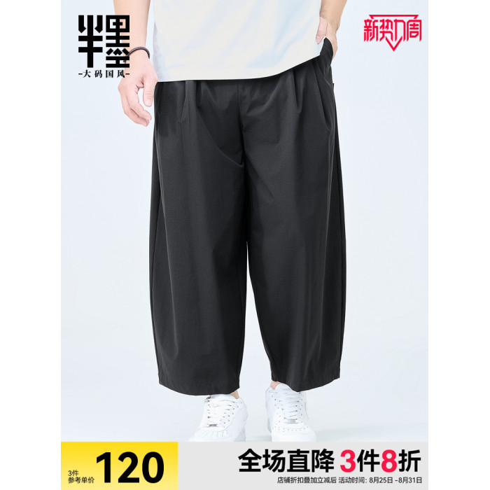 半墨濶腿褲男大碼寬松九分褲2025夏季涼感胖子休閒九分褲加肥加大