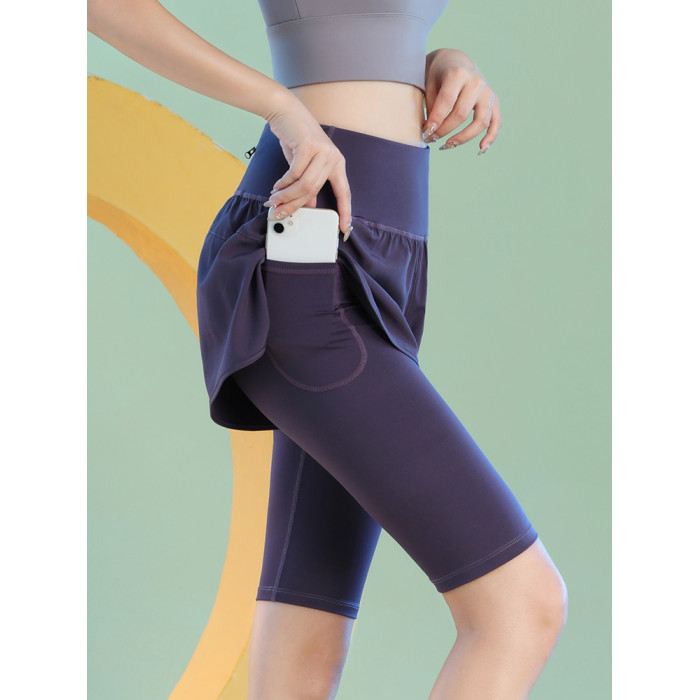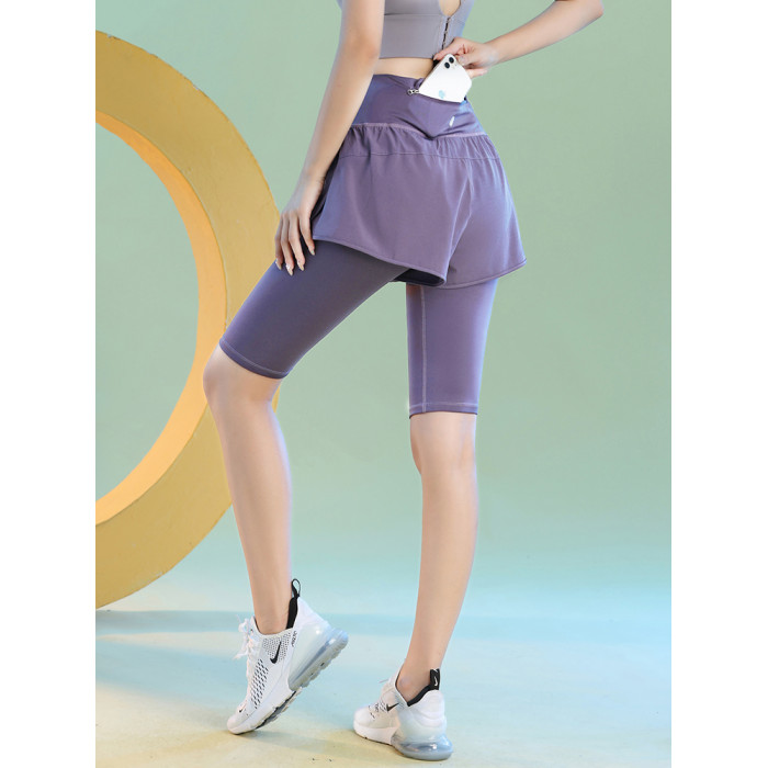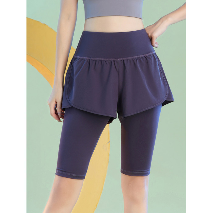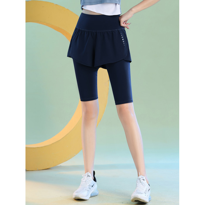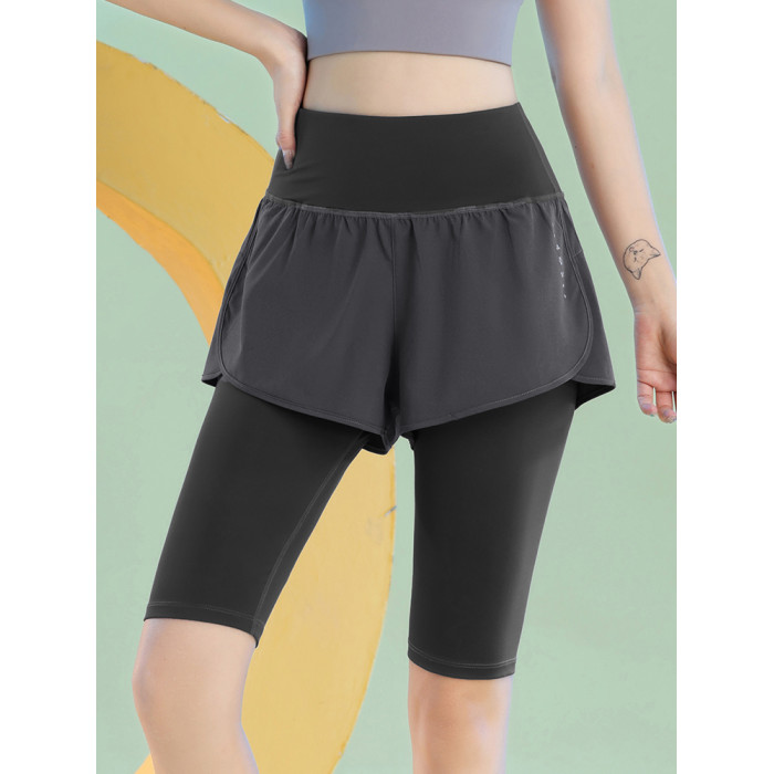 大碼假兩件瑜伽褲女夏季防走光高腰緊身運動褲速乾專業跑步壓縮褲