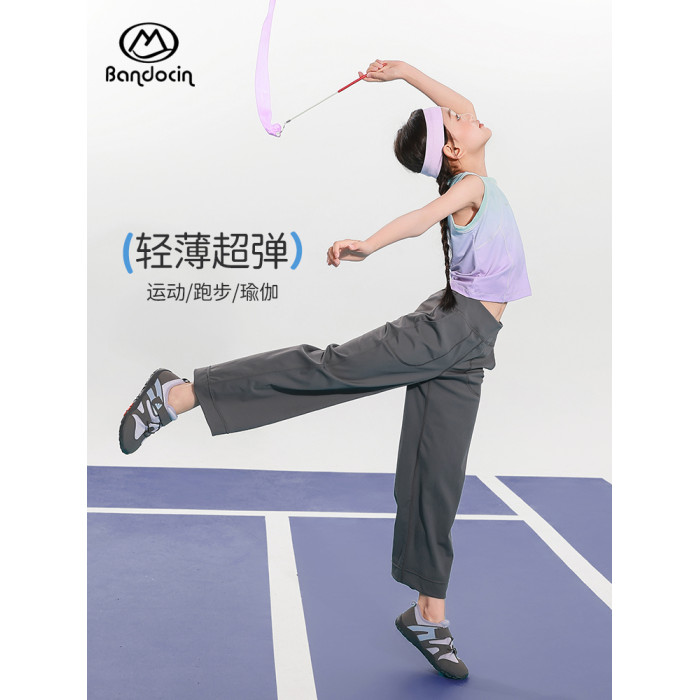 半度閒女童夏裝運動九分褲薄款透氣2025新款女孩夏季透氣休閒長褲