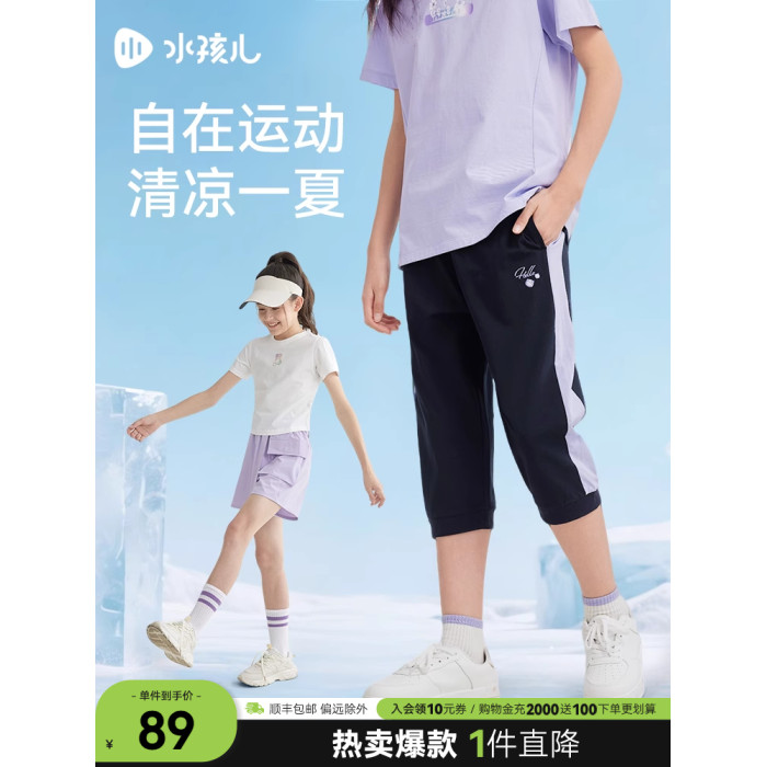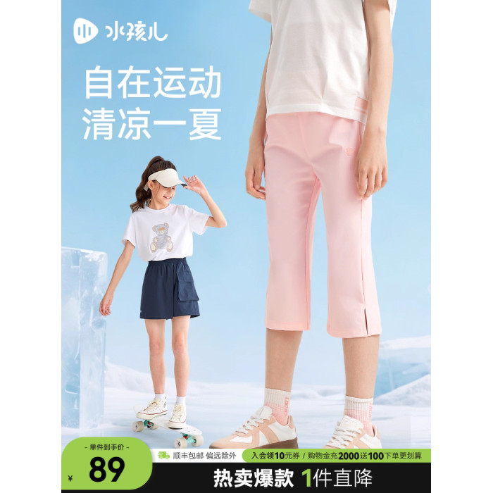 【防曬涼感】水孩兒兒童短褲七分2025夏裝新品男女童圓領T恤上衣