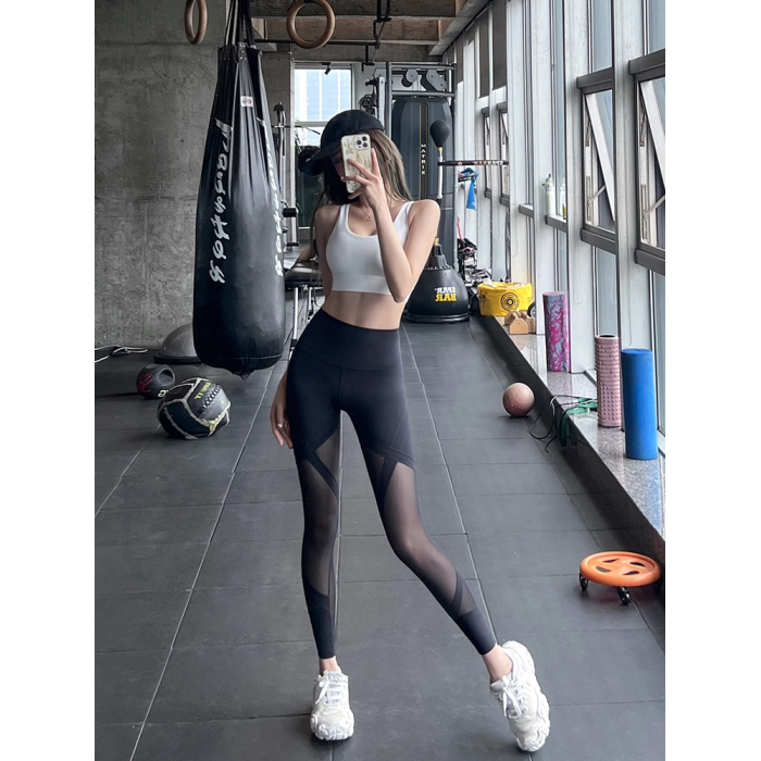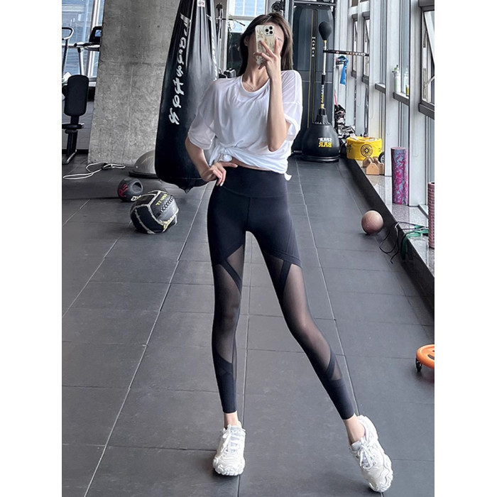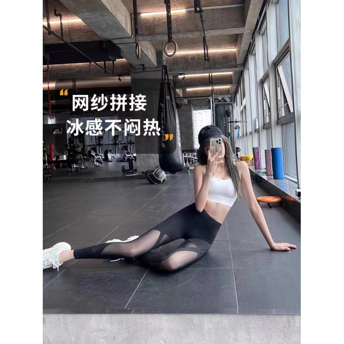NextLori瑜伽服女套裝夏高腰提臀緊身跑步健身網紗拼接彈力運動褲