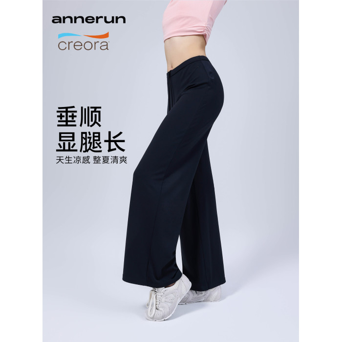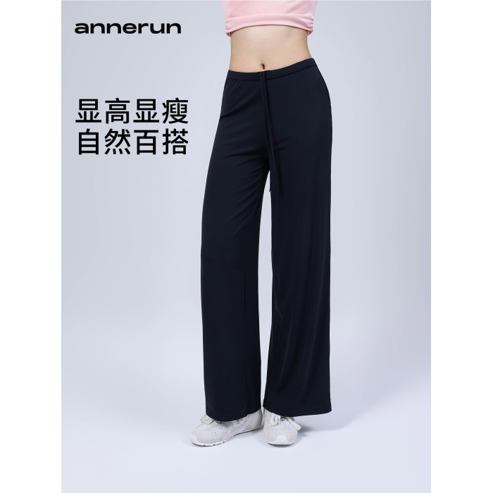 annerun涼感濶腿運動長褲寬松顯瘦垂墜感運動褲跑步瑜伽褲直筒褲