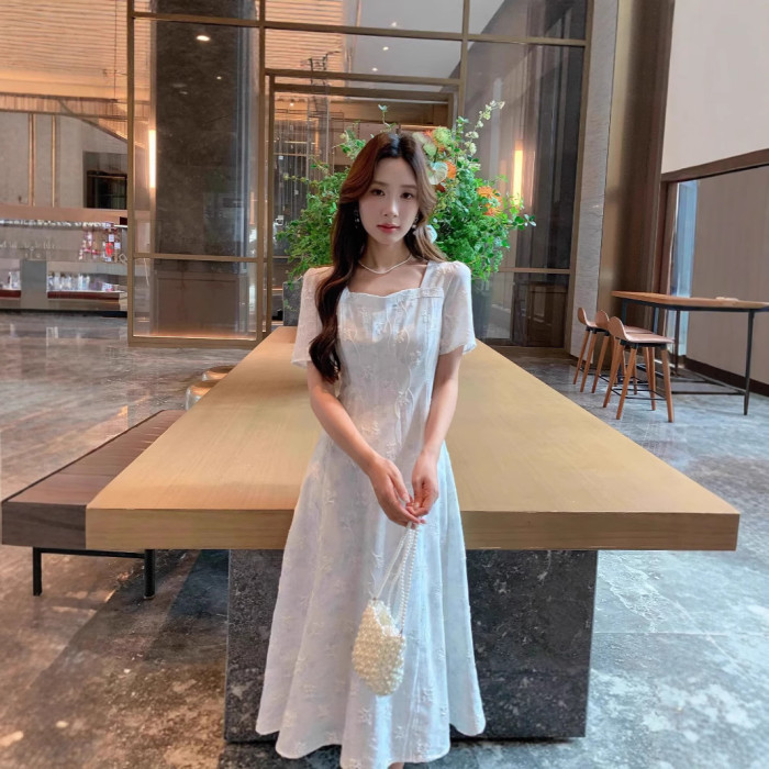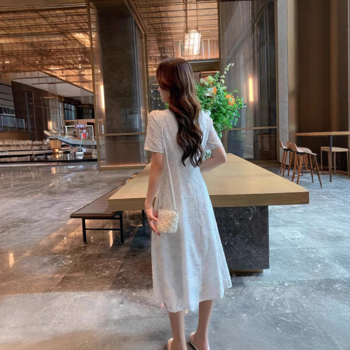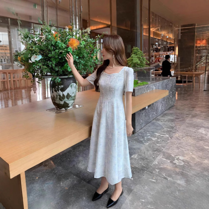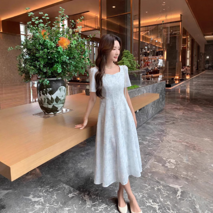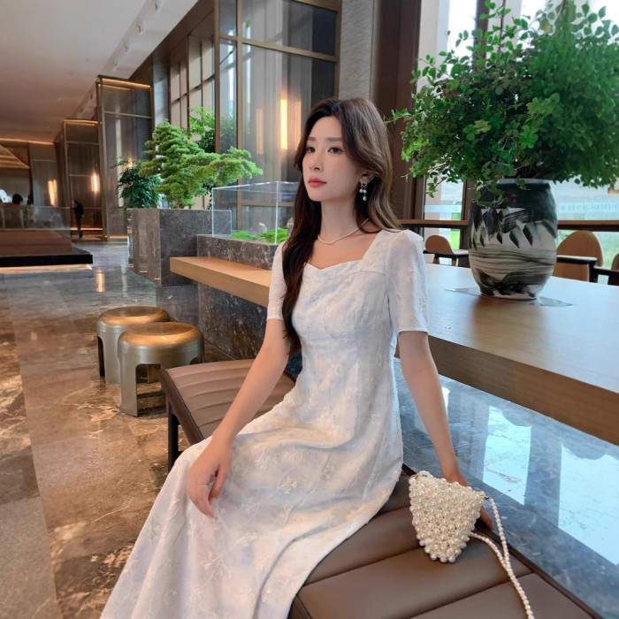 女裝微胖夏季新款胖mm高級感清新優雅氣質提花收腰連衣