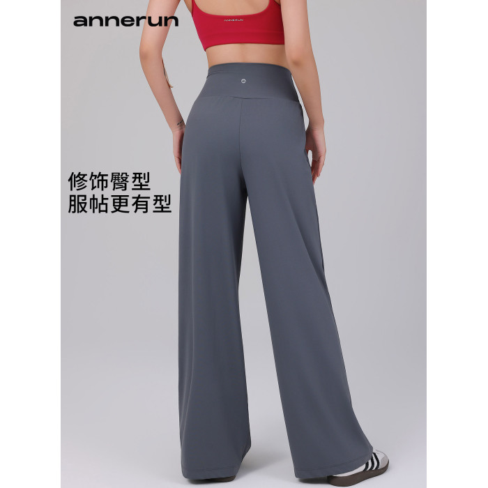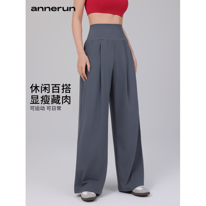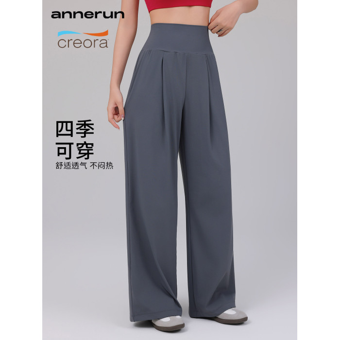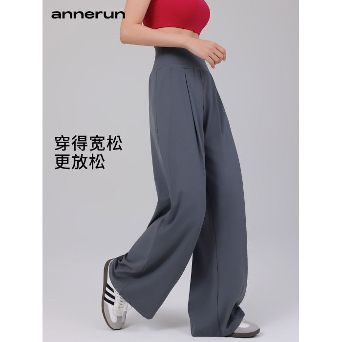 annerun裸感直筒運動褲女高腰顯瘦濶腿褲夏薄款寬松垂感瑜伽長褲