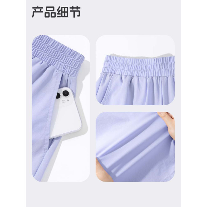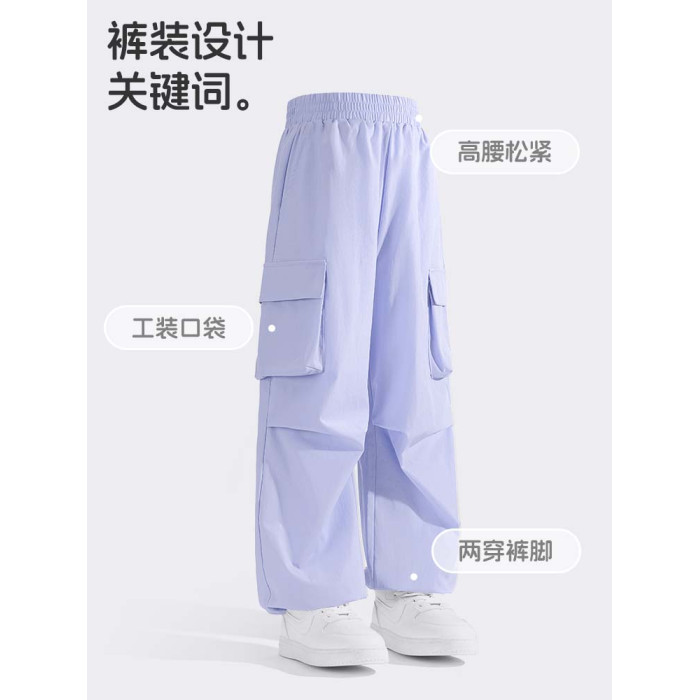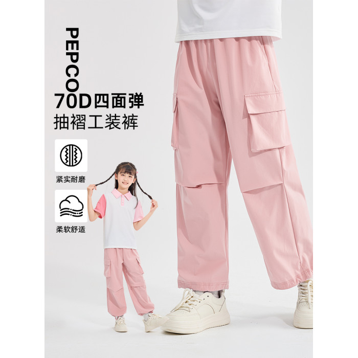小豬班納女童褲子涼感速乾2025年夏薄款大童寬松戶外濶腿工裝褲PC
