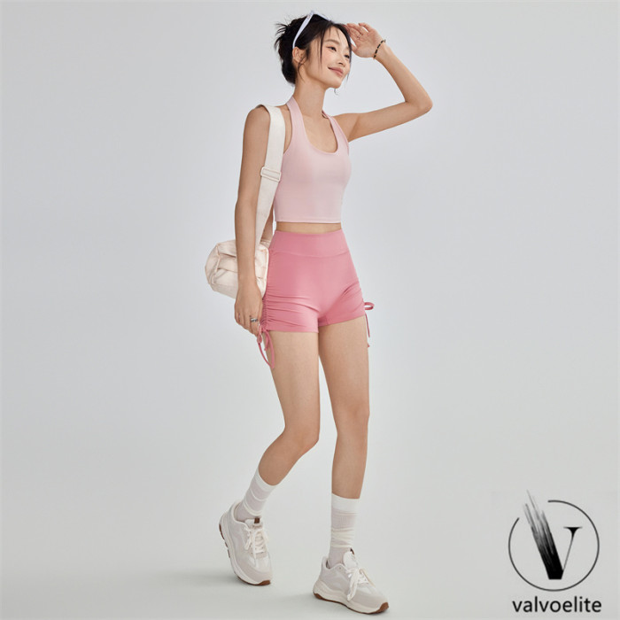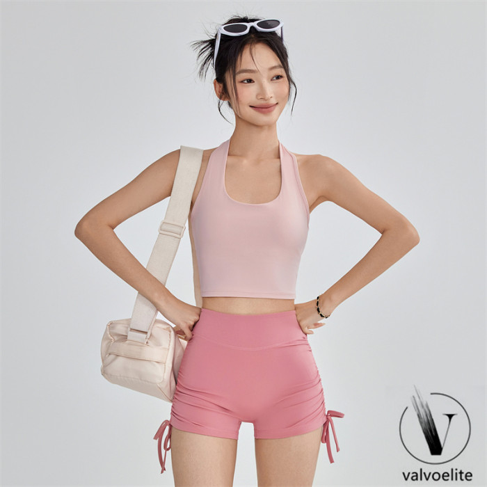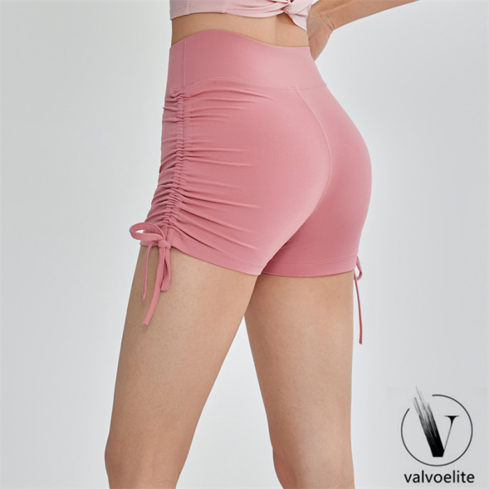 VALVOELITE彈力抽繩健身短褲女蜜桃提臀瑜伽三分褲無尲尬線運動褲