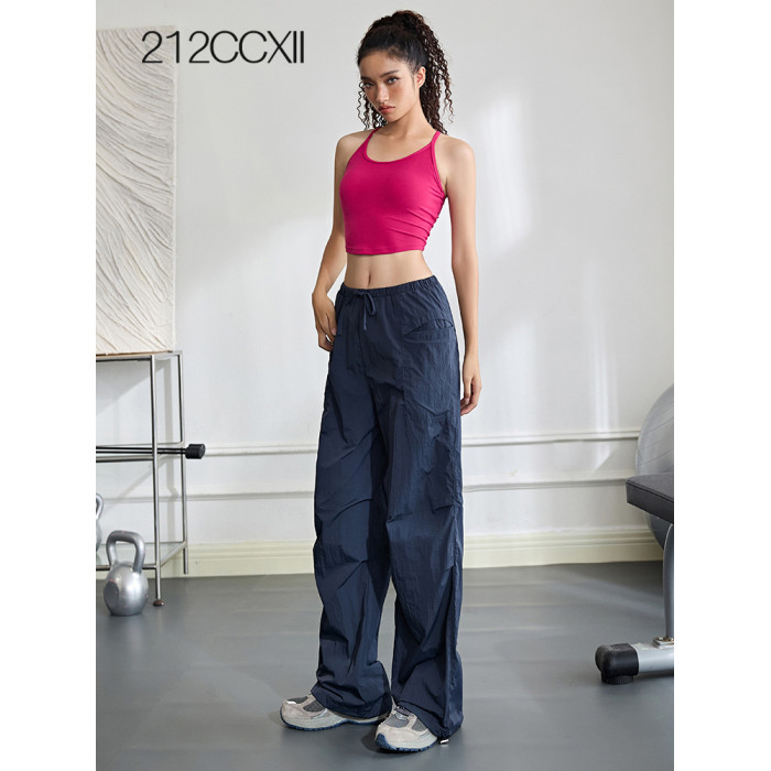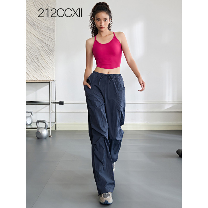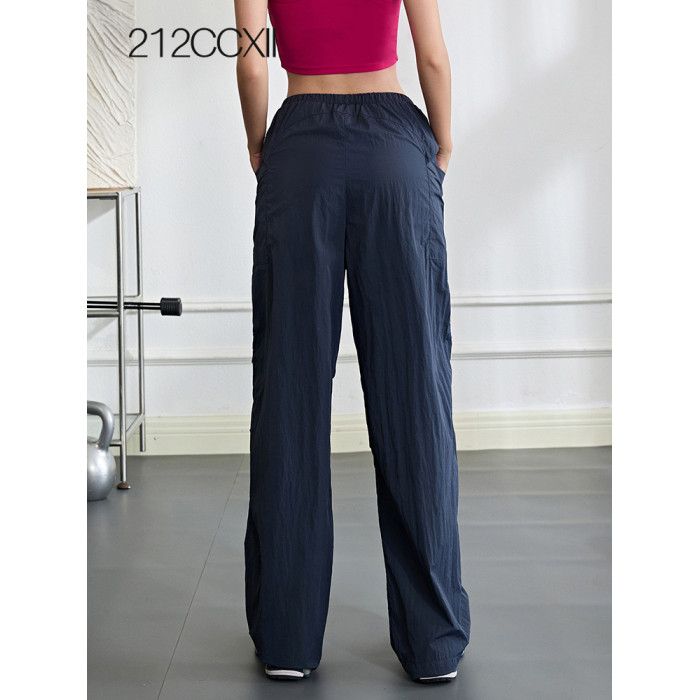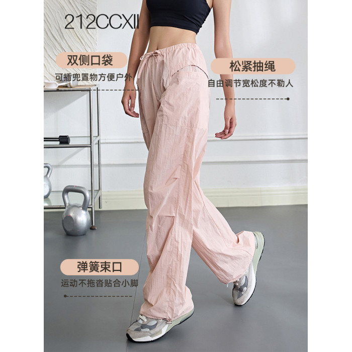 高腰工裝褲女戶外登山運動褲防水休閒濶腿褲寬松直筒耐磨健身長褲