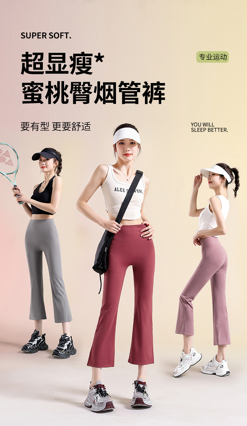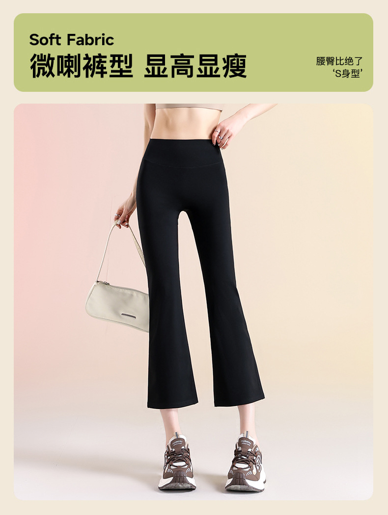 微喇鯊魚褲女外穿七分2025年夏季薄款高腰塑形無尲尬線喇叭運動褲