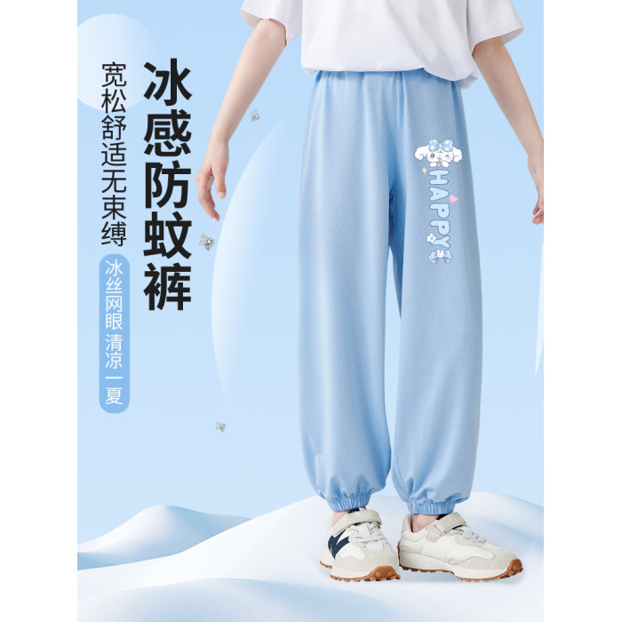 NASA慵懶風防蚊褲女童夏季2025新款兒童網眼褲子夏裝大童速乾長褲