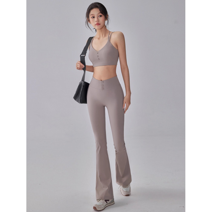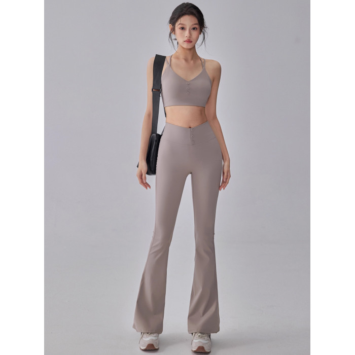 IuIu Yogo高腰微喇瑜伽褲裸感提臀運動褲高彈跑步健身服套裝夏