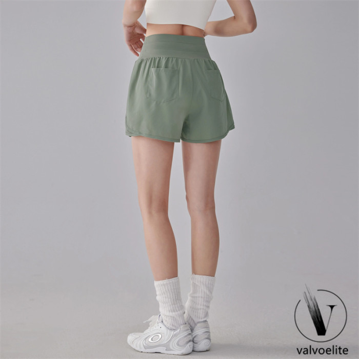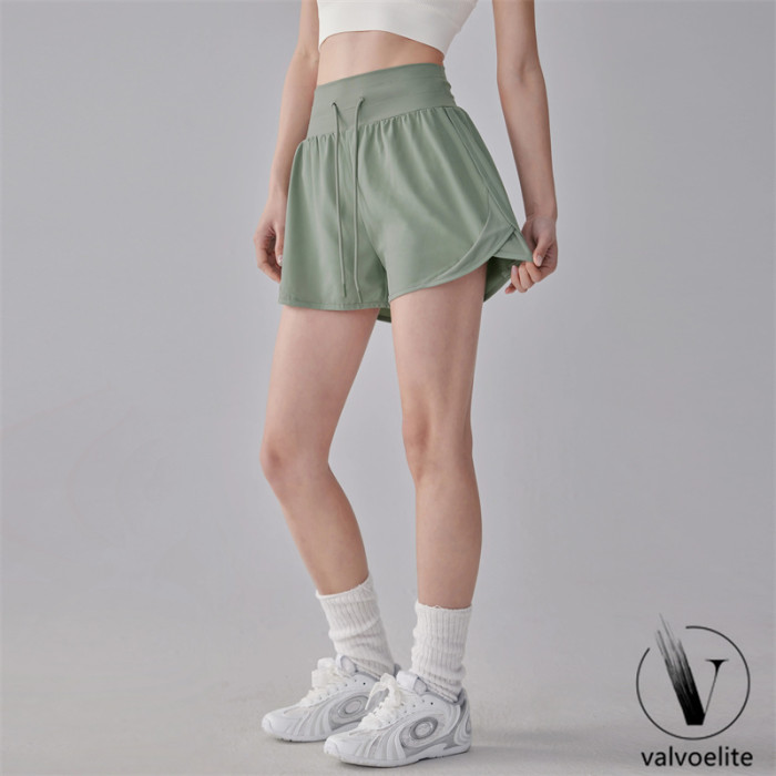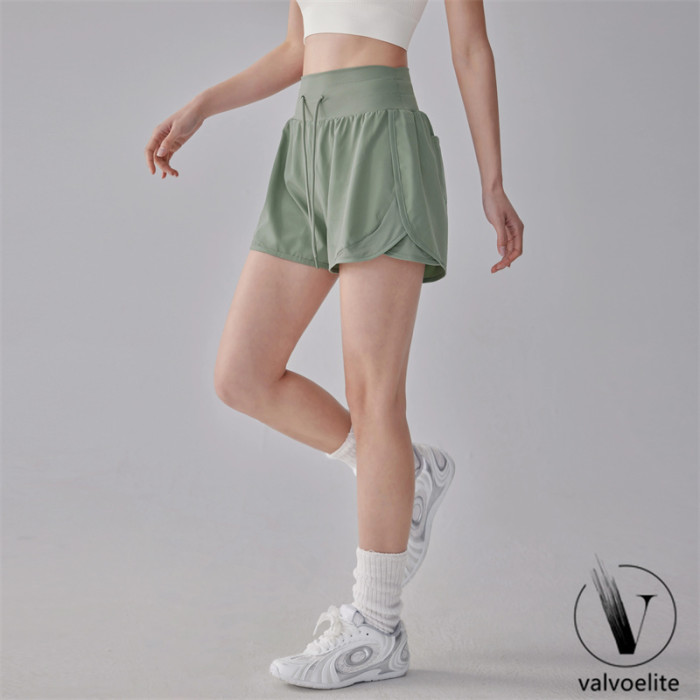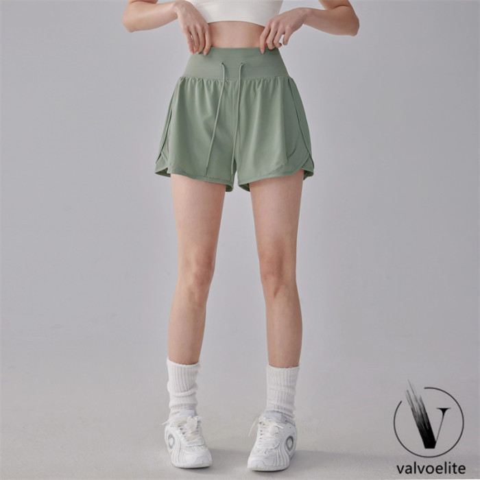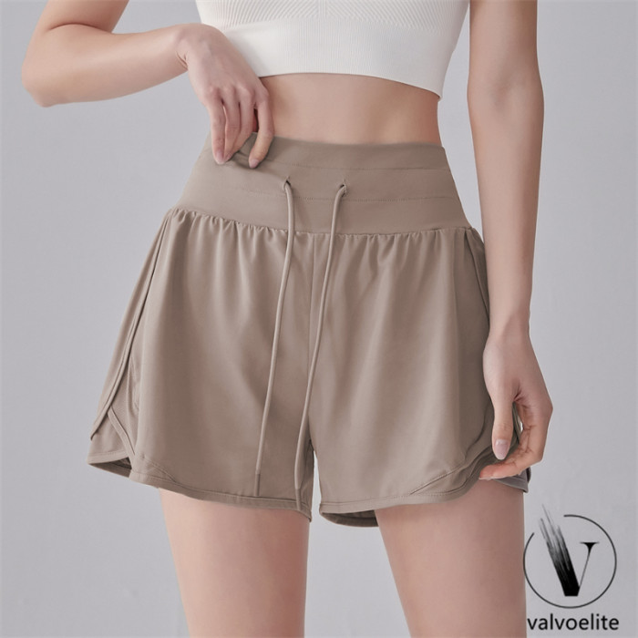 VALVOELITE高腰抽繩健身短褲女假兩件寬松瑜伽褲跑步訓練運動褲夏