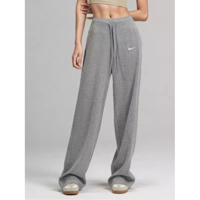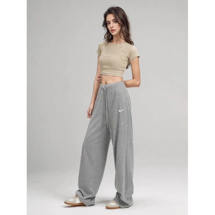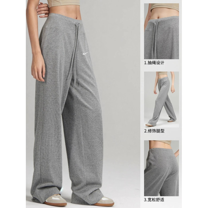 奧萊折釦瑜伽褲女新款高腰寬松直筒濶腿褲灰色垂感休閒運動褲子