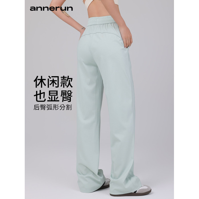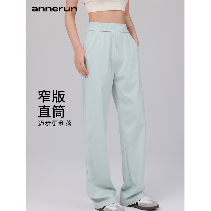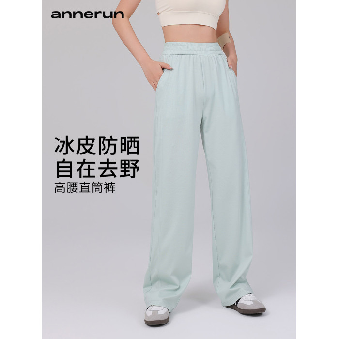 annerun涼感運動褲女休閒跑步爬山健身褲高腰顯瘦冰感防曬濶腿褲