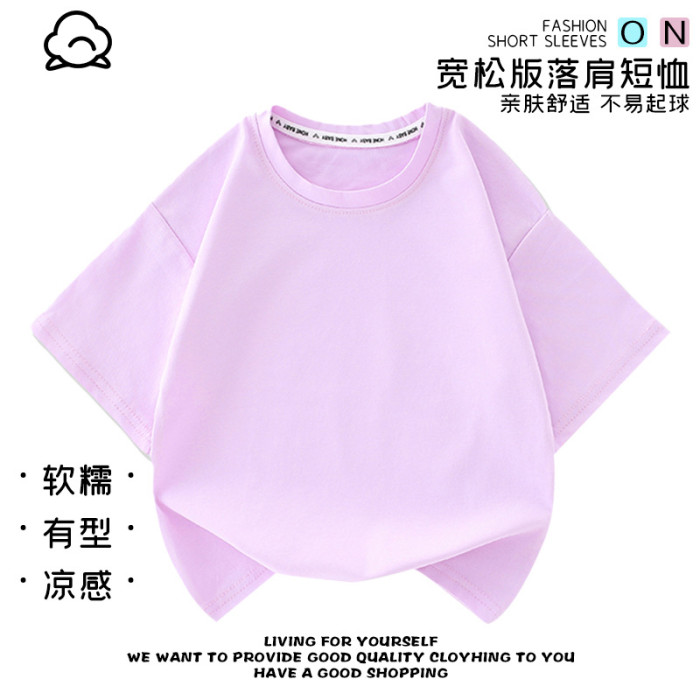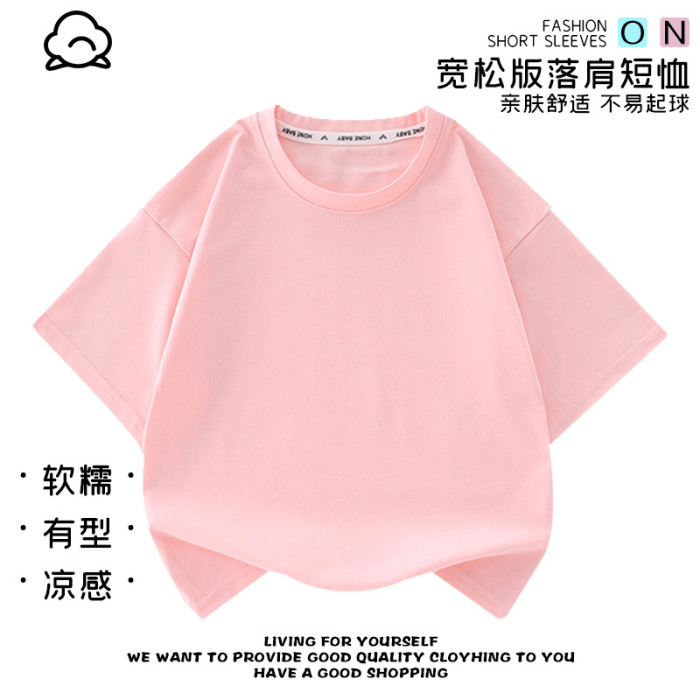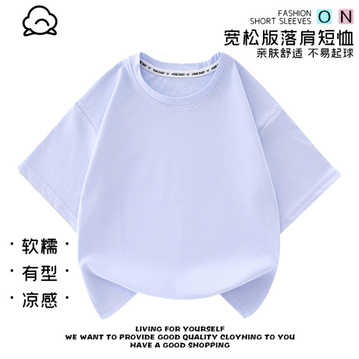 純色短袖兒童夏季休閒新款t恤新款卡通圓領衣服夏季純棉短袖上衣