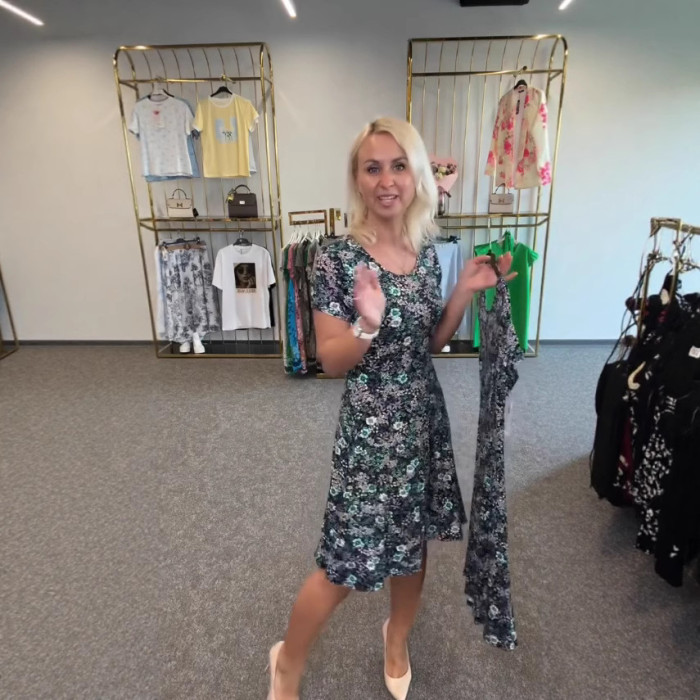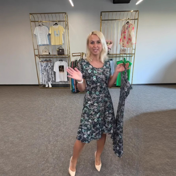 2025年新款獨立站夏季休閒優雅印花連衣裙女裝