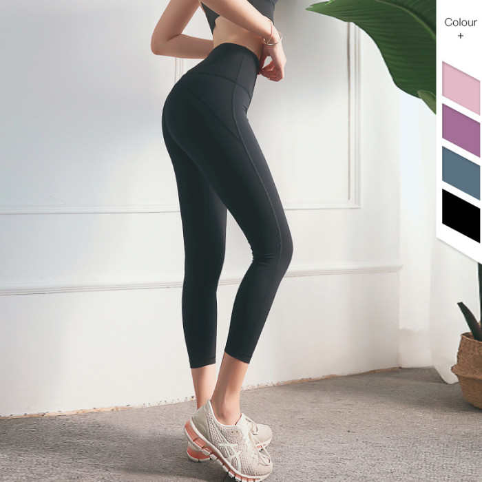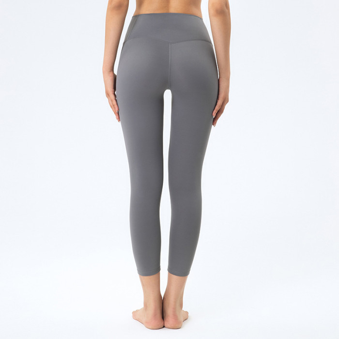 裸感健身褲瑜伽褲女緊身高腰提臀速乾跑步運動褲子外穿瑜伽褲八分