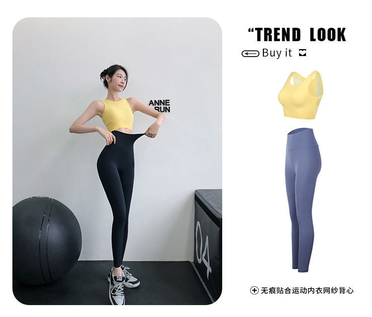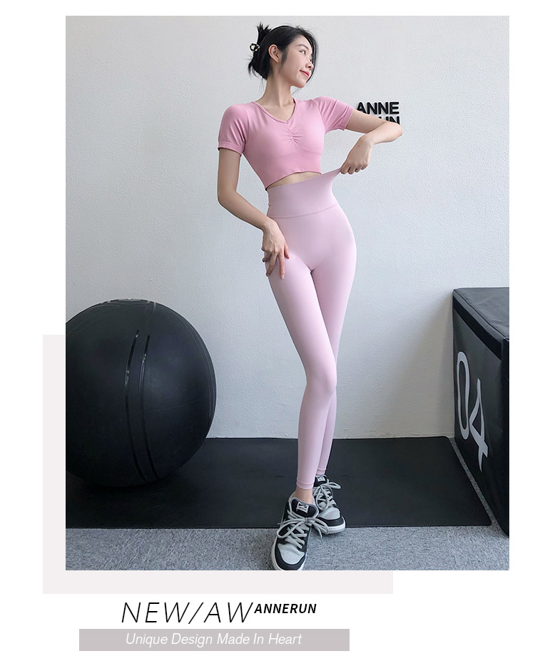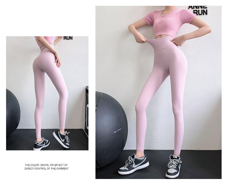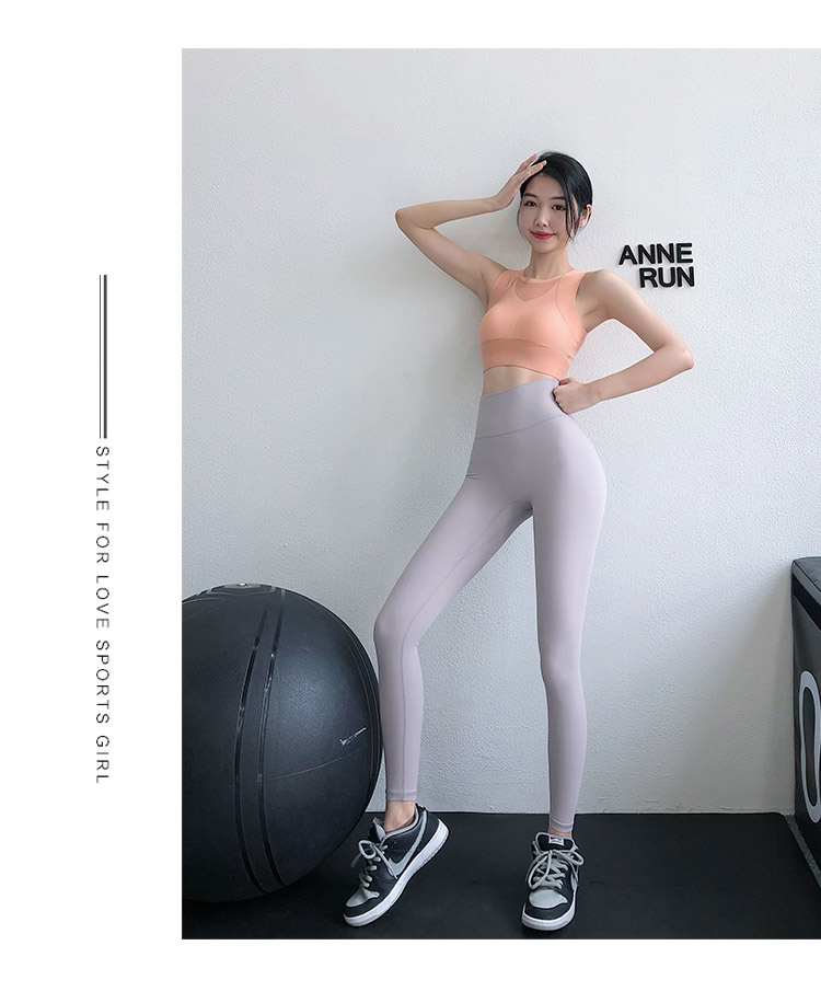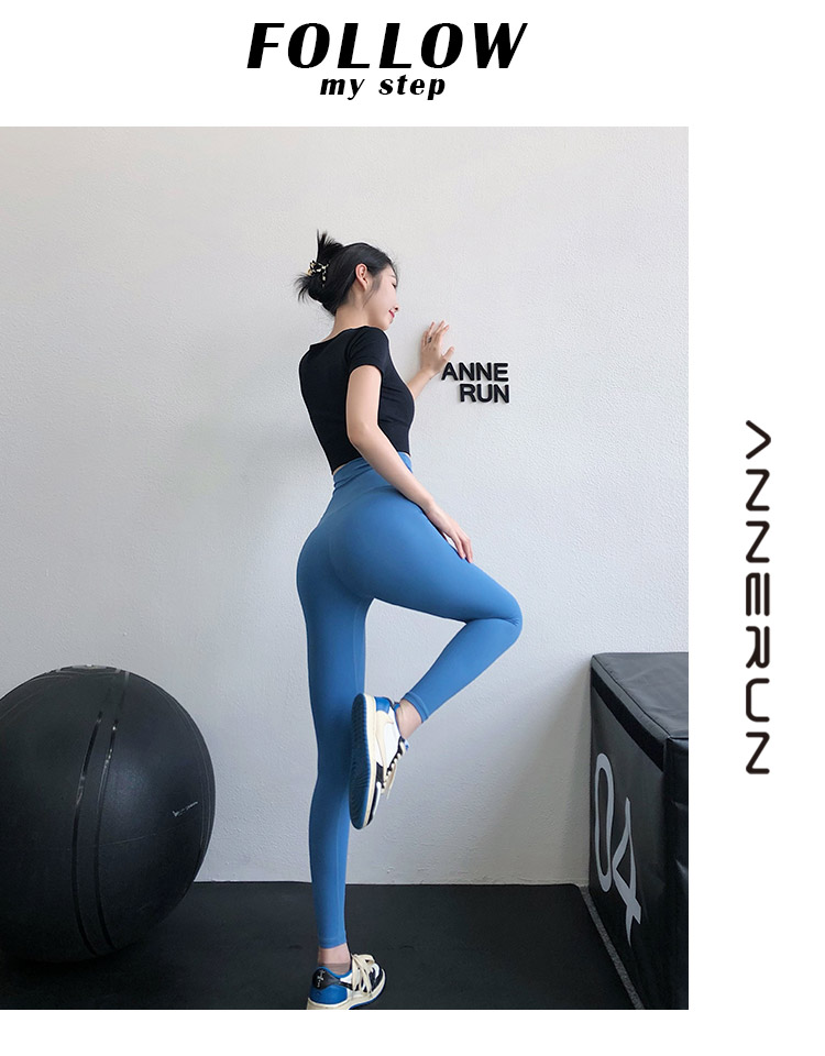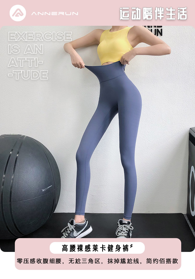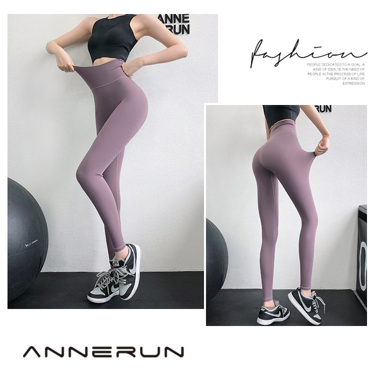 annerun高腰瑜珈褲女裸感緊身萊卡健身褲透氣速乾蜜桃跑步運動褲