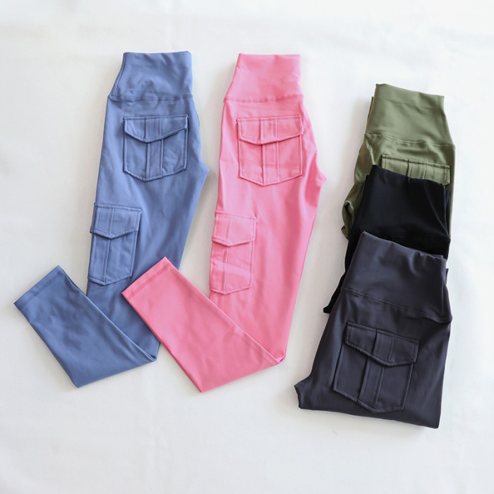 2025新款蜜桃提臀健身褲女高腰裸感工裝運動褲彈力緊身翹臀瑜伽褲