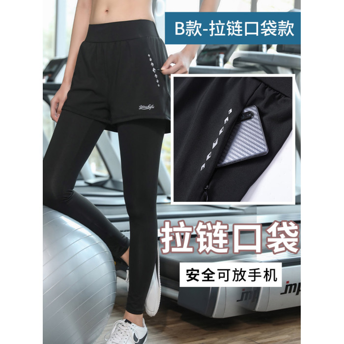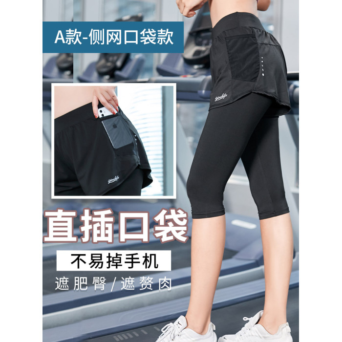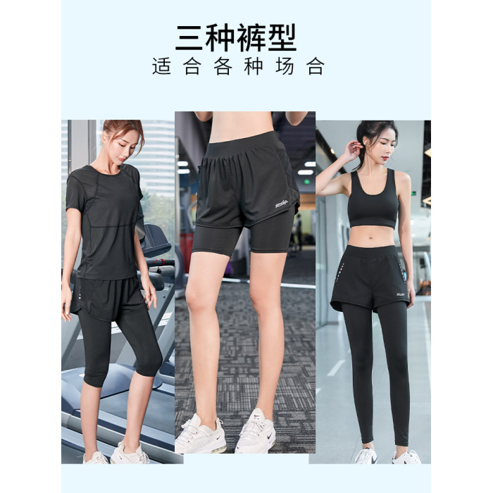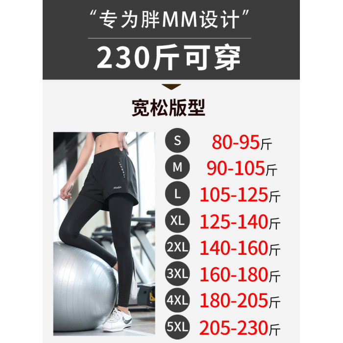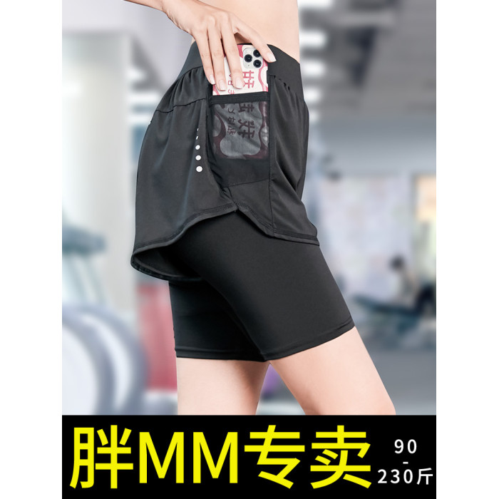 加大碼運動褲女胖mm健身跑步短褲假兩件專業速乾瑜伽三分褲200斤