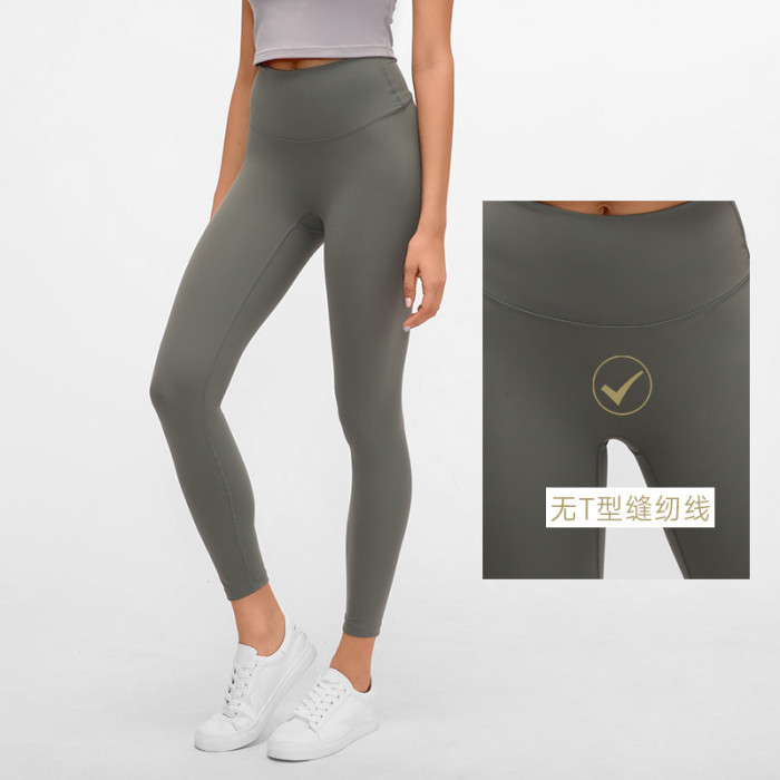 裸感無痕無中線瑜伽褲女緊身跑步運動褲提臀高腰健身九分褲