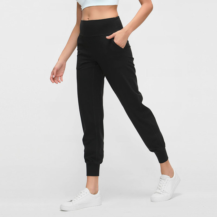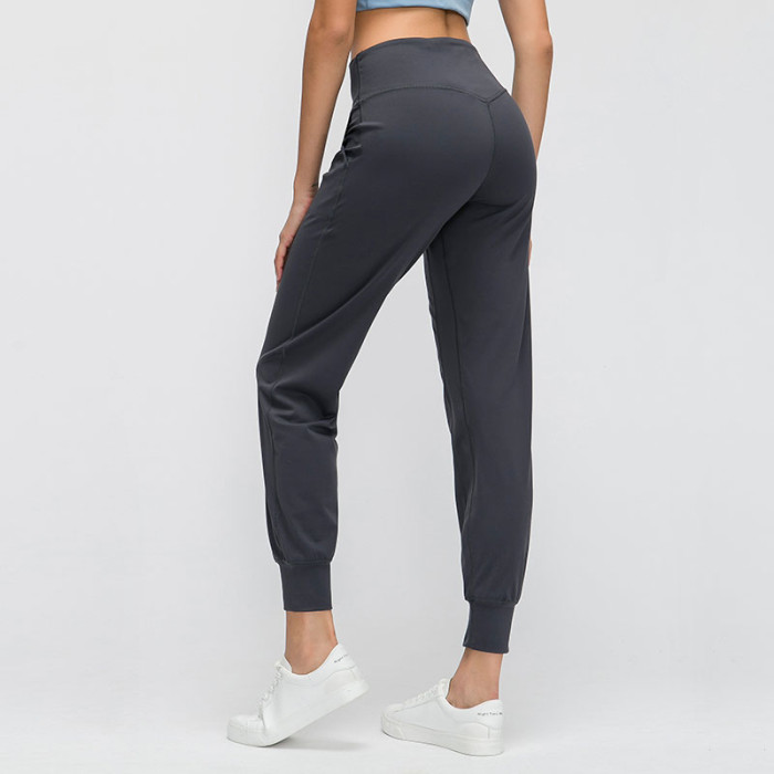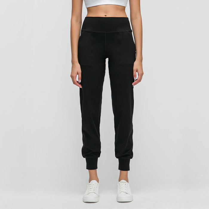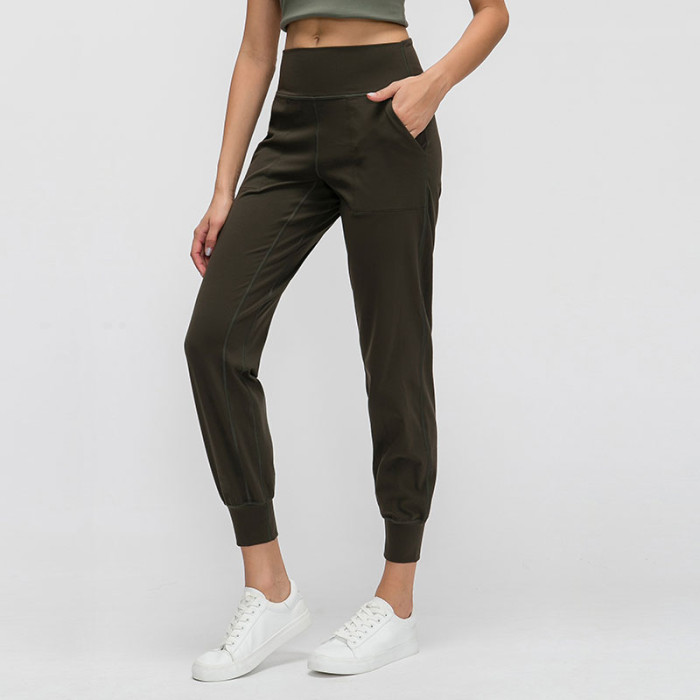 裸感面料提臀口袋寬松瑜伽九分褲女跑步健身休閒束腳運動褲