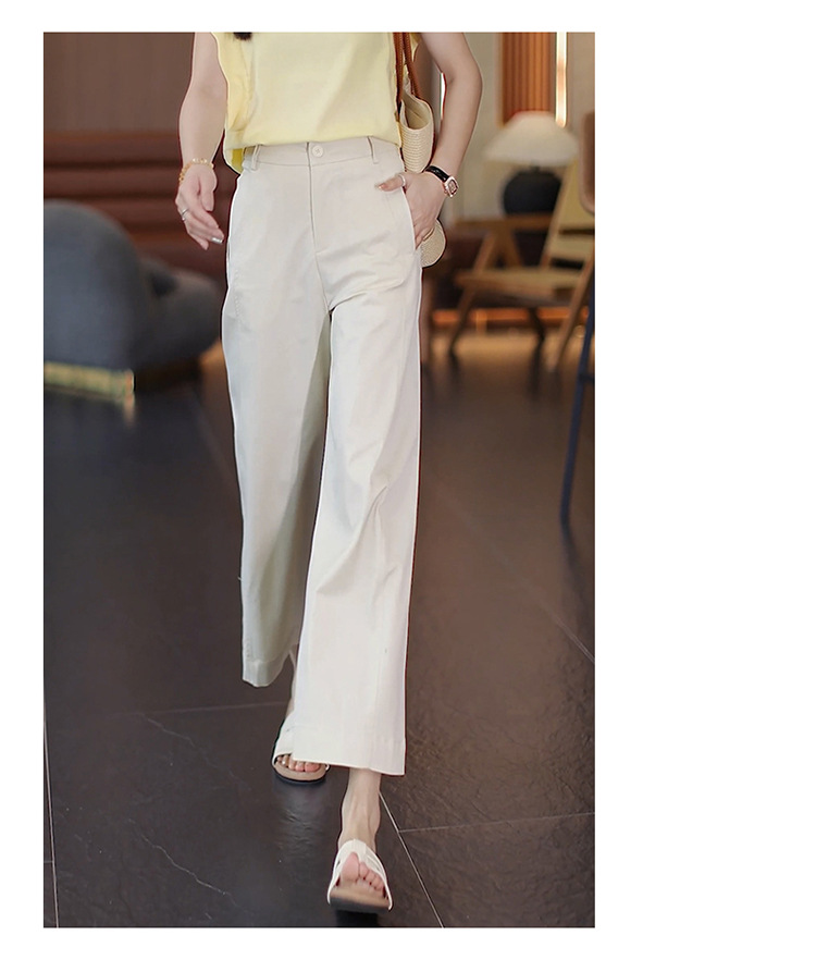 黃色八分濶腿褲女夏季薄款2025新款抗皺冰絲西裝褲後松緊休閒褲子