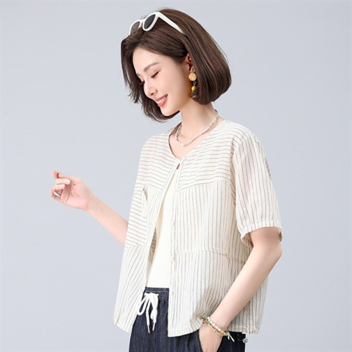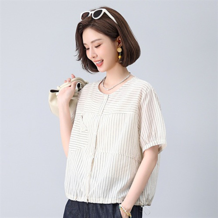 2025年夏季新款漂亮氣質棉質上衣寬松顯瘦襯