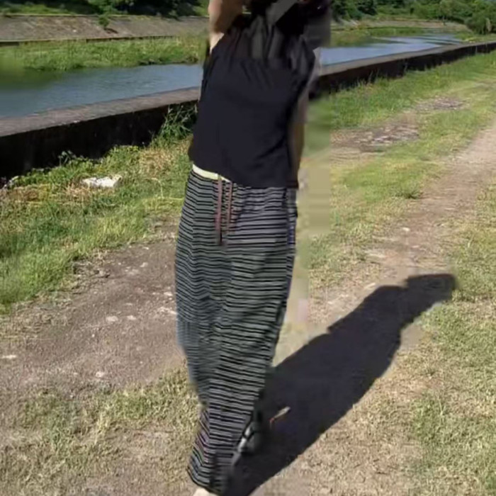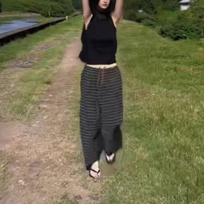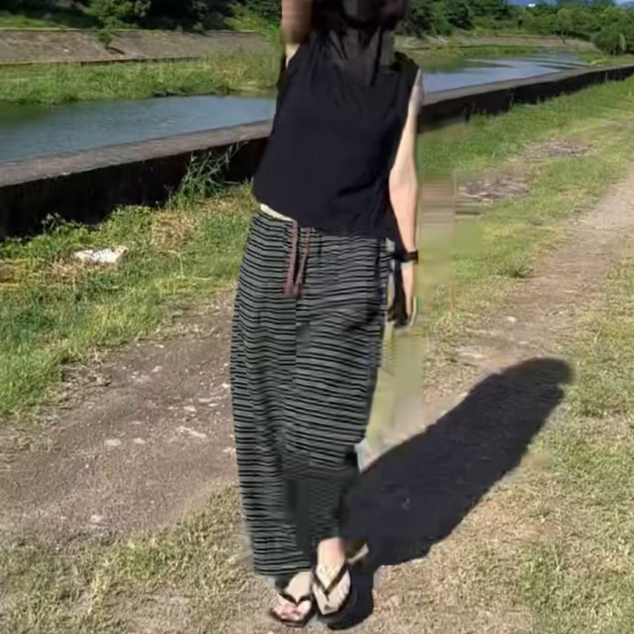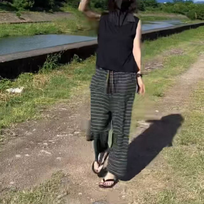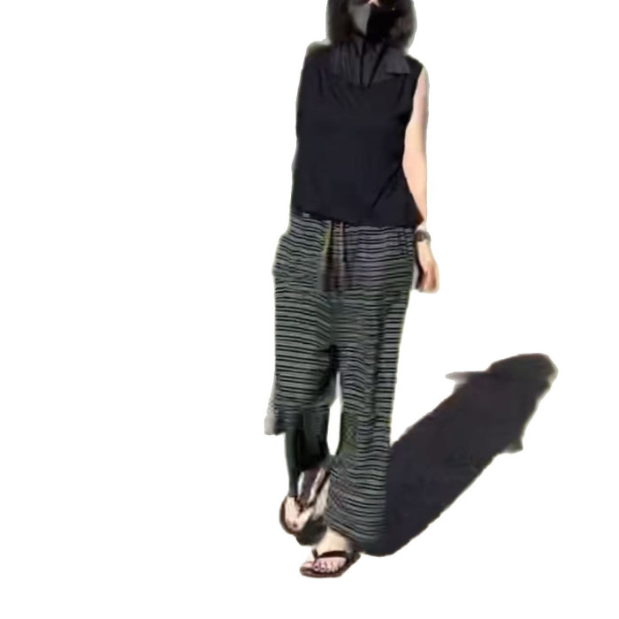 25800新大愛美依緣2025夏季新款黑色無袖背心休閒條紋濶腿褲洋氣