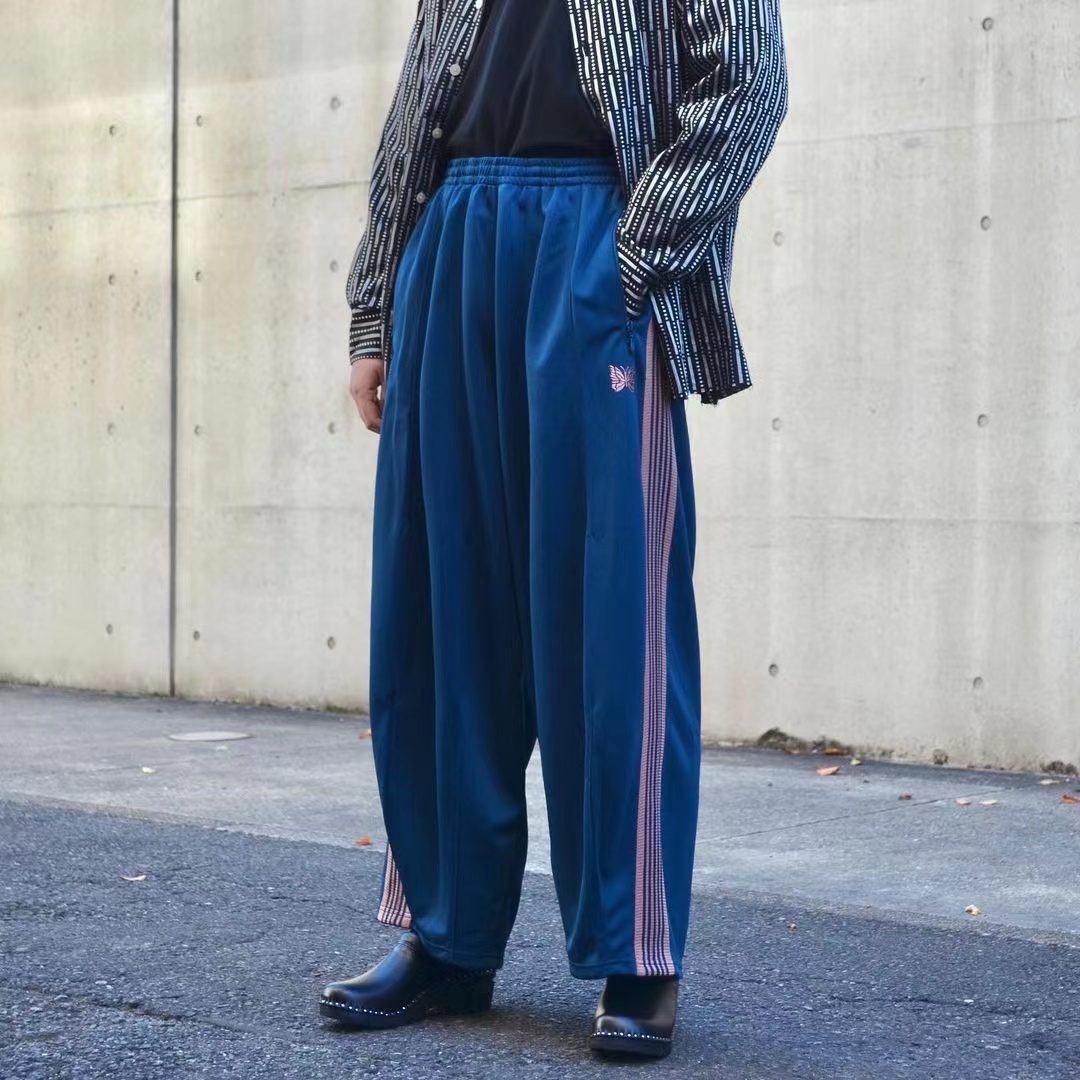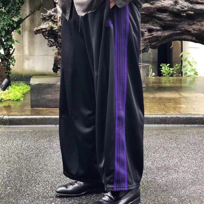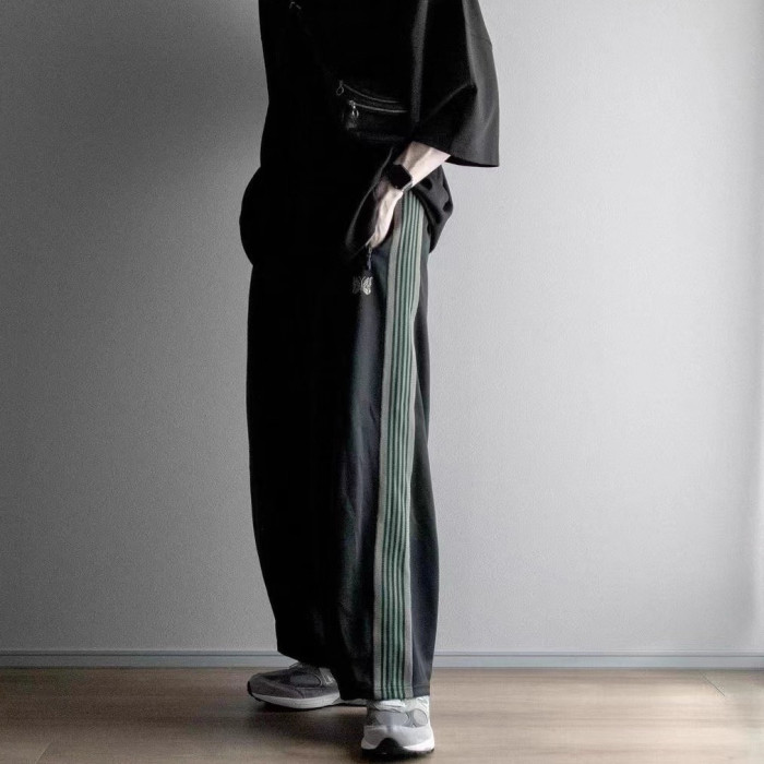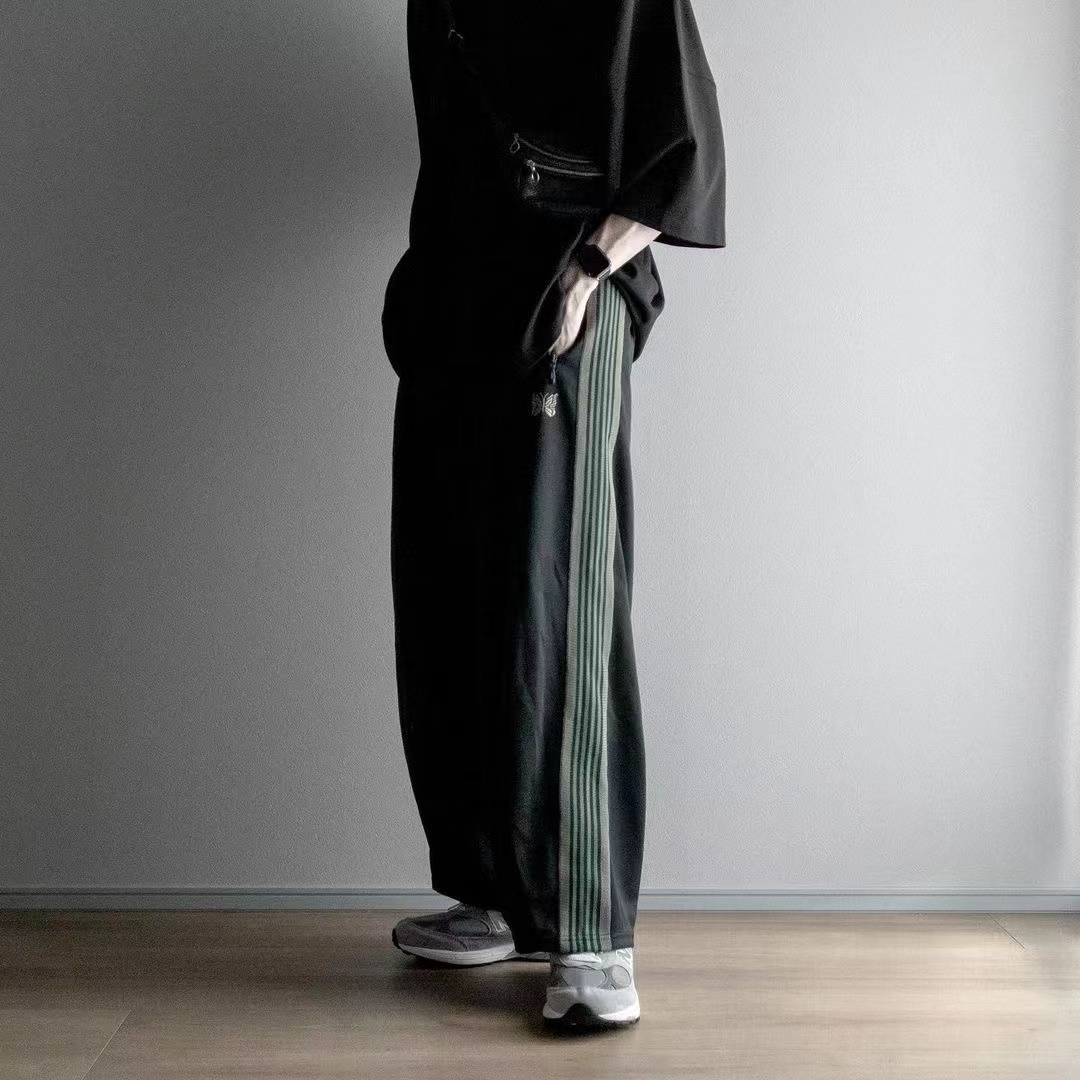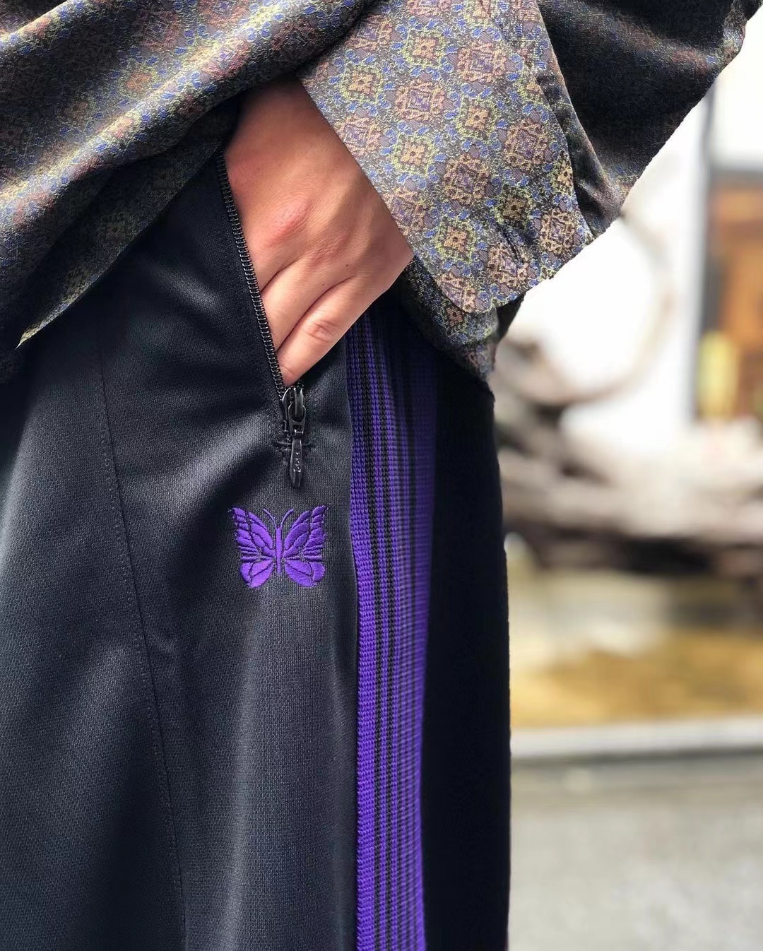 Needles track蝴蝶刺綉織帶直筒褲運動休閒日系喇叭濶腿褲潮 男女