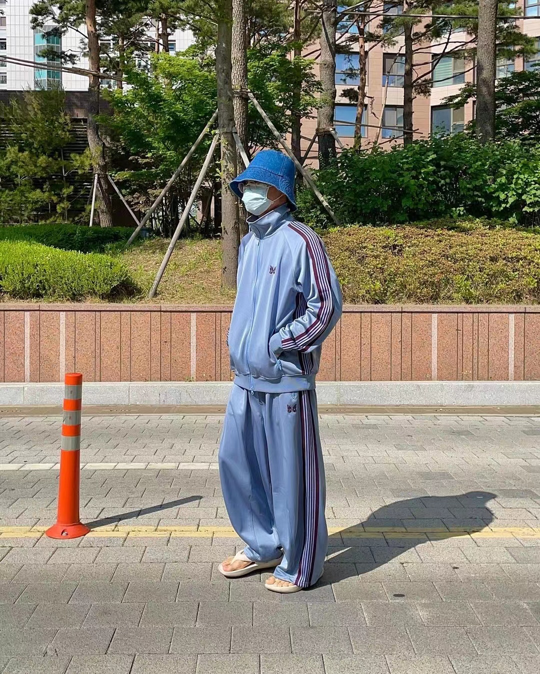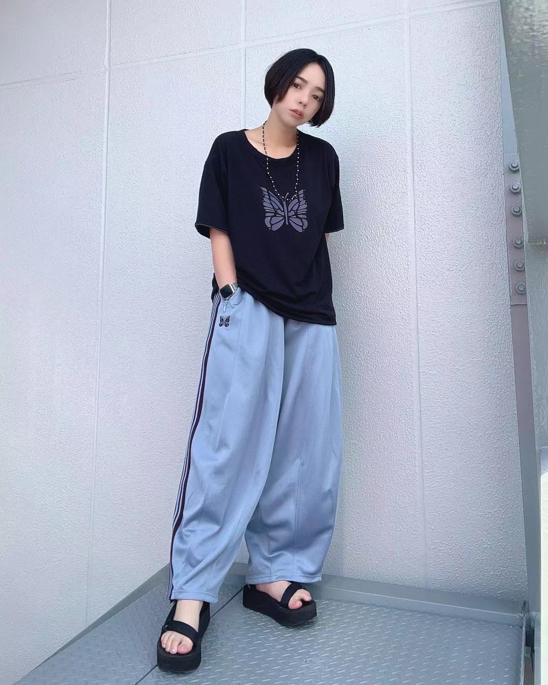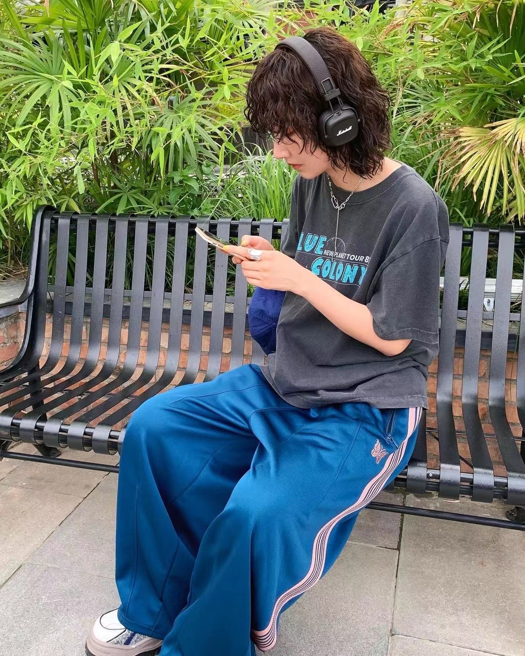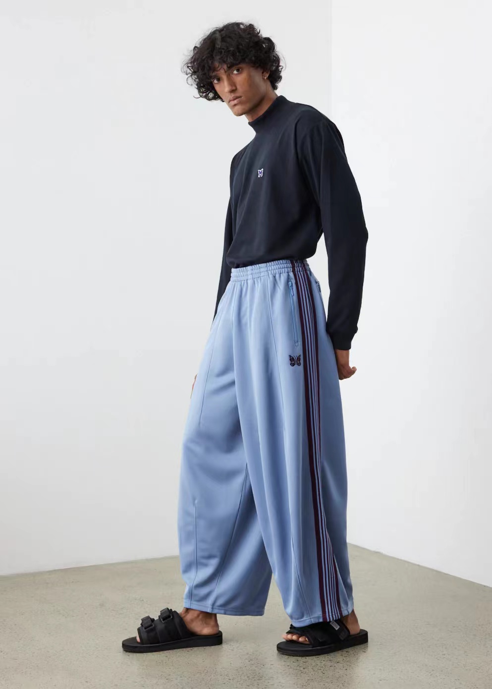 Needles track蝴蝶刺綉織帶直筒褲運動休閒日系喇叭濶腿褲潮 男女