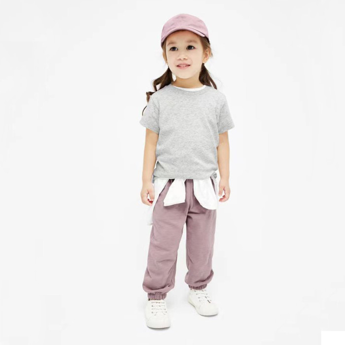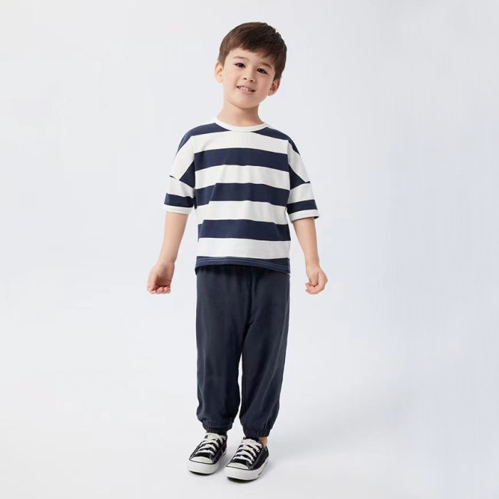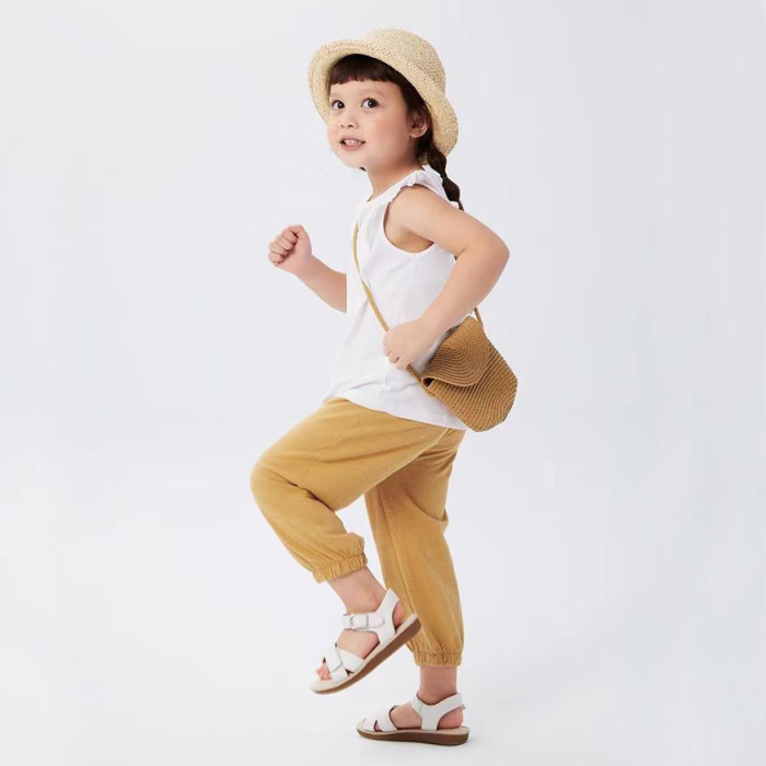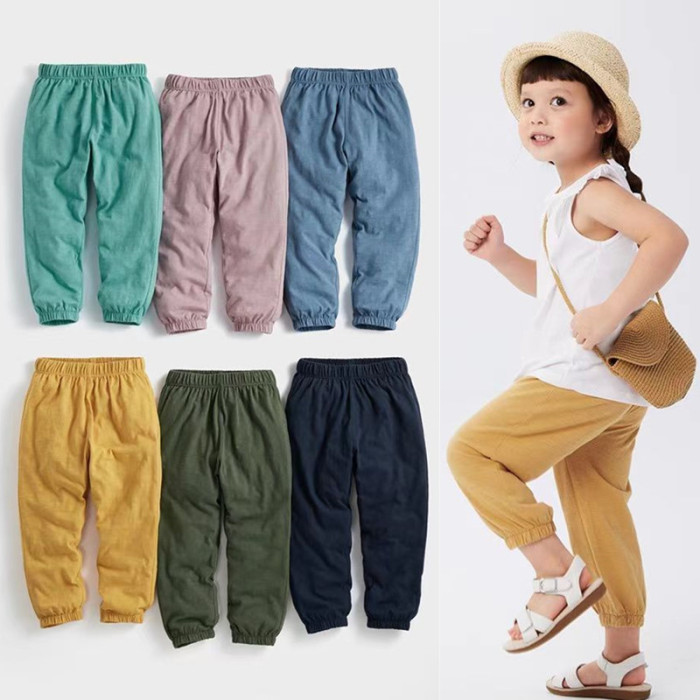 夏季新款男女童純棉防蚊褲兒童柔軟竹節棉束口褲中大童純色休閒褲