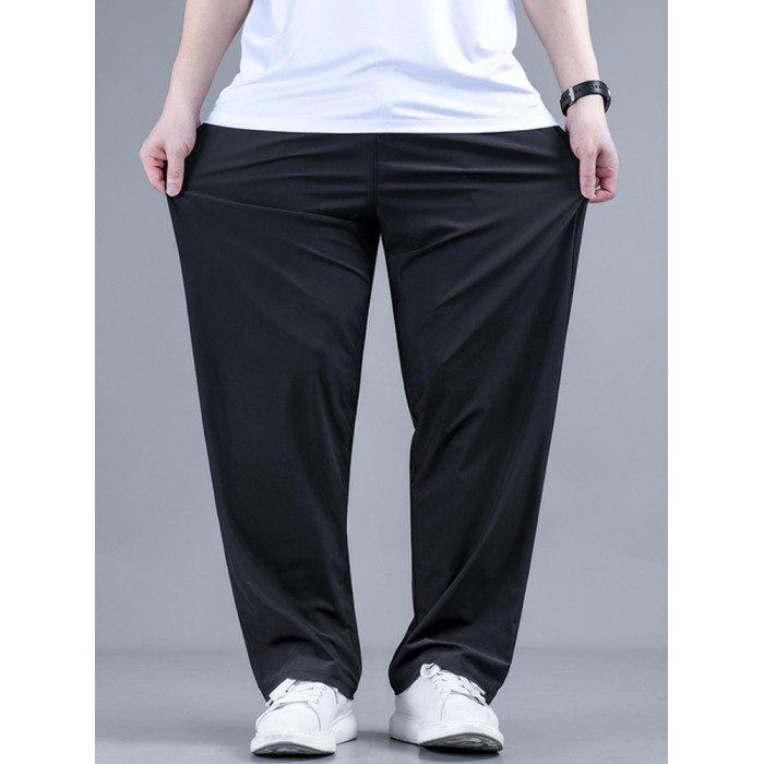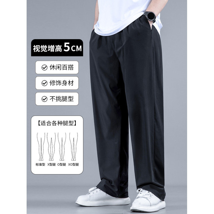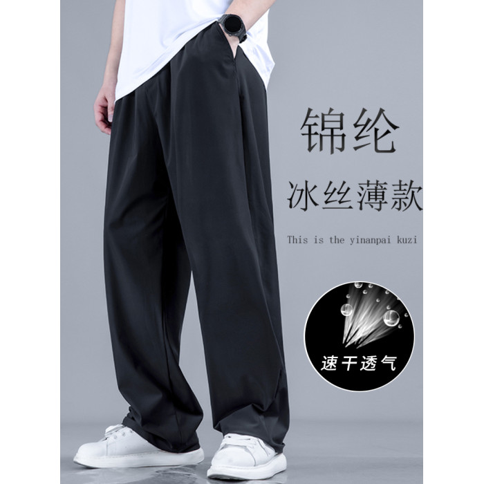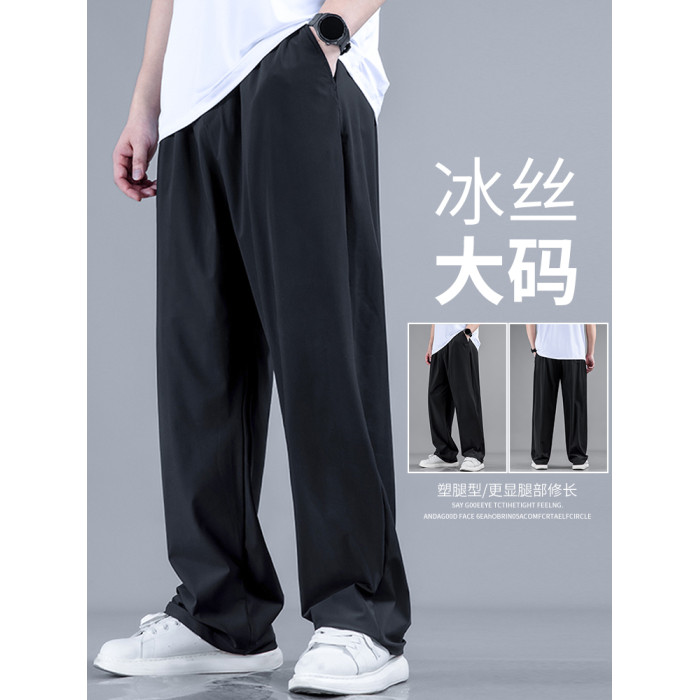 大碼直筒褲夏季男褲子垂感冰絲濶腿褲寬松加肥加大男士休閒長褲潮