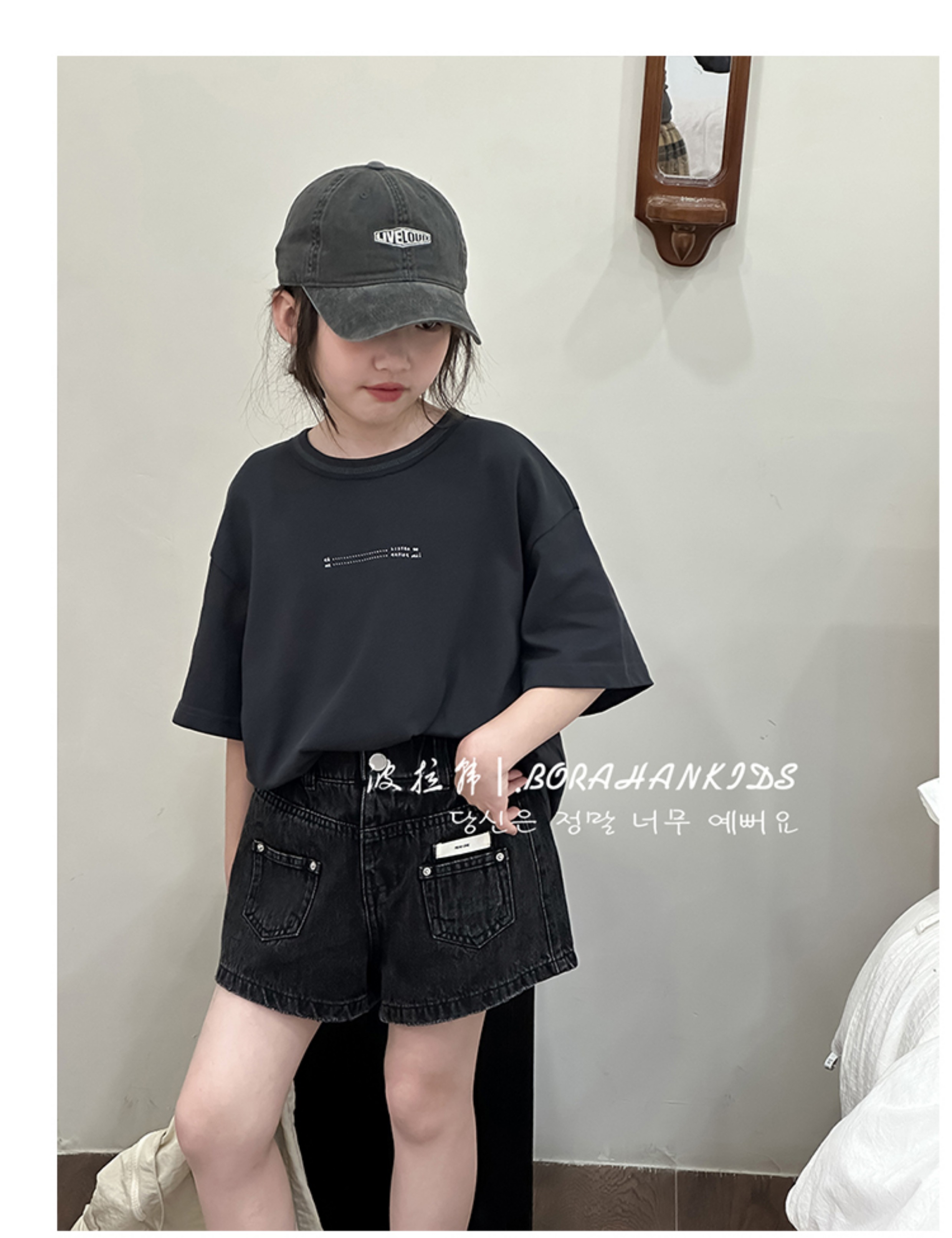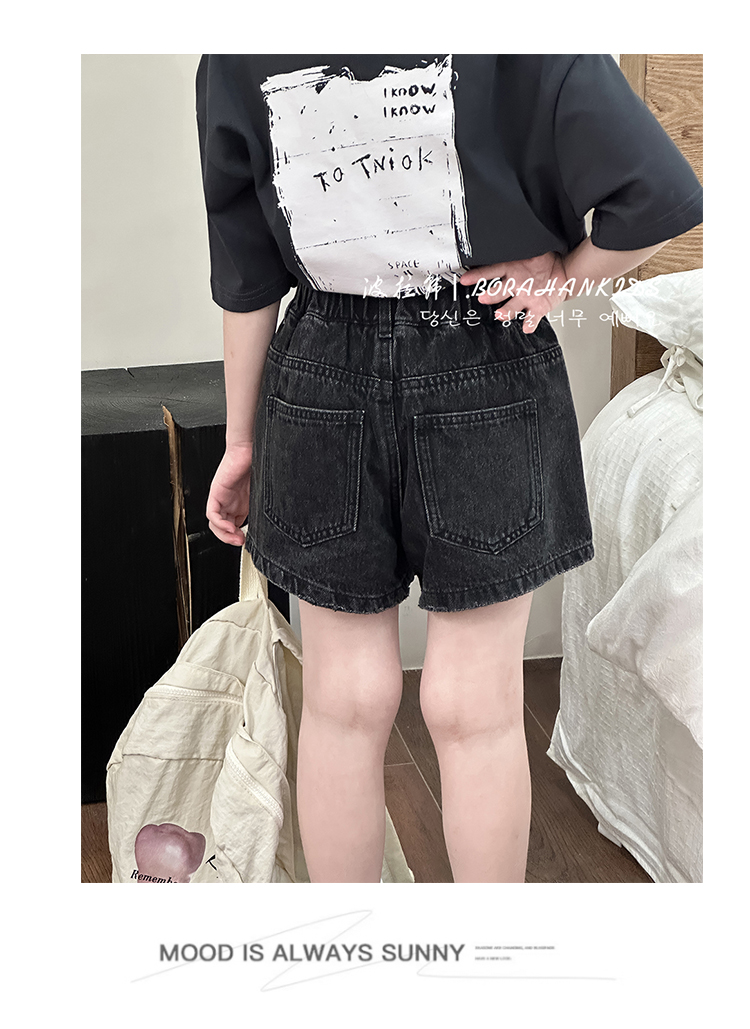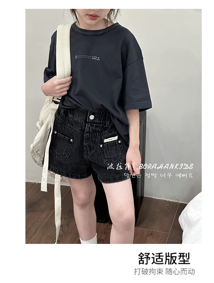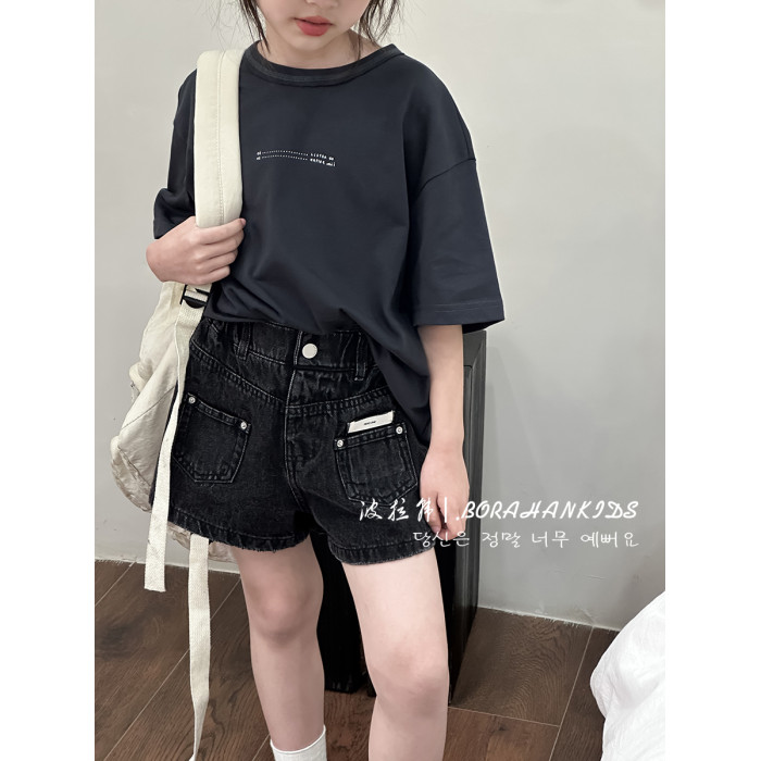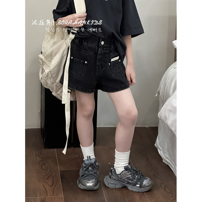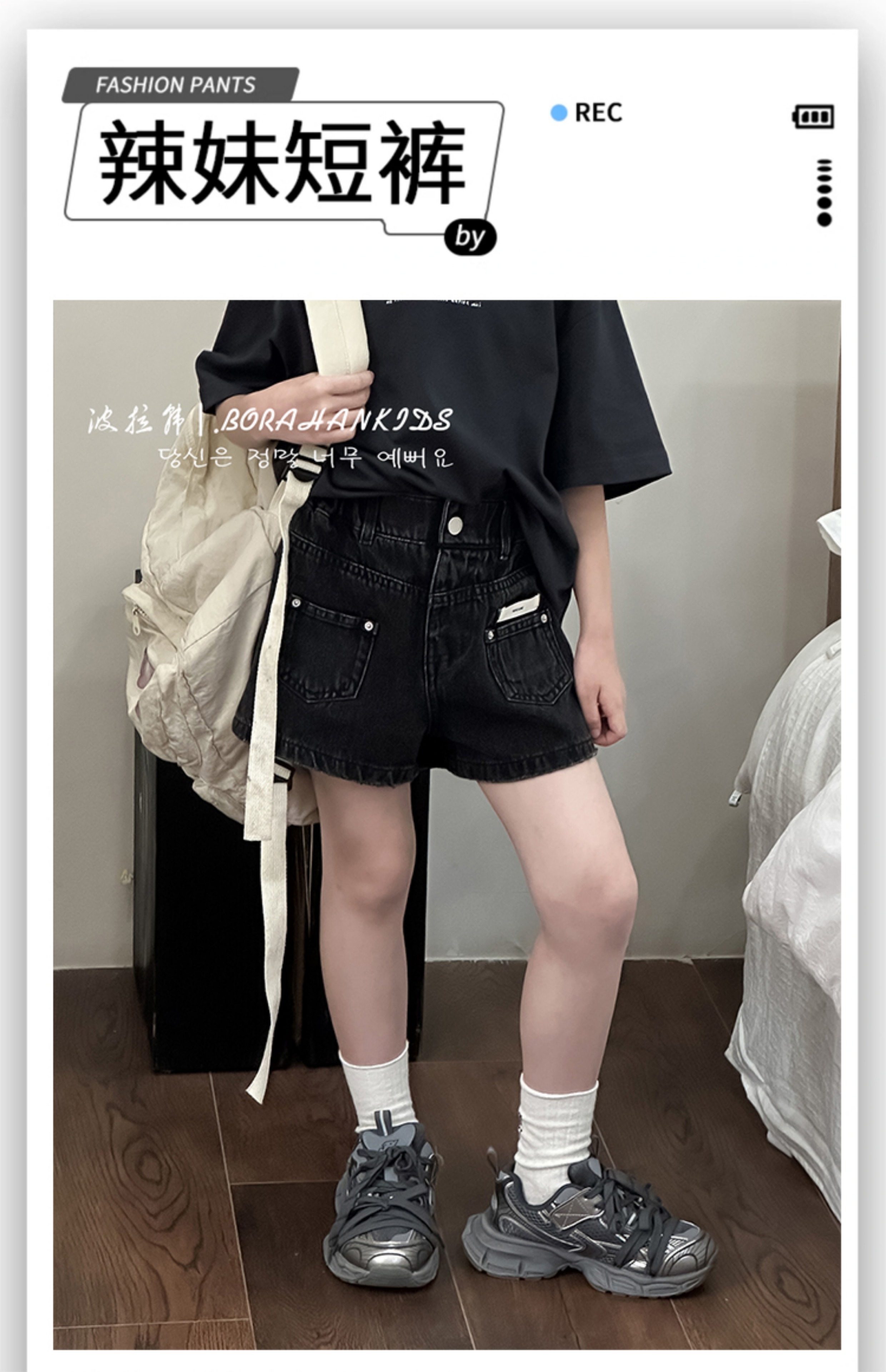 波拉韓童裝女童夏季牛仔短褲2025女孩洋氣熱褲子兒童中大童三分褲