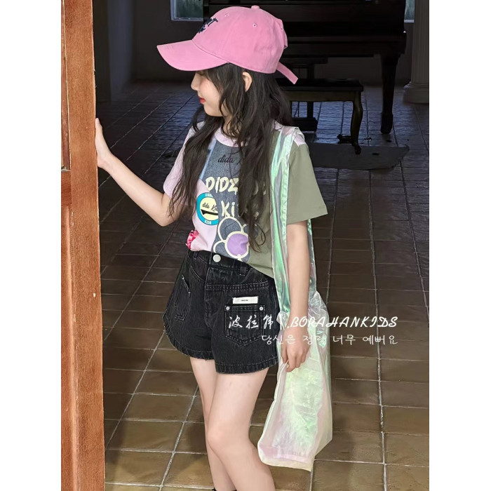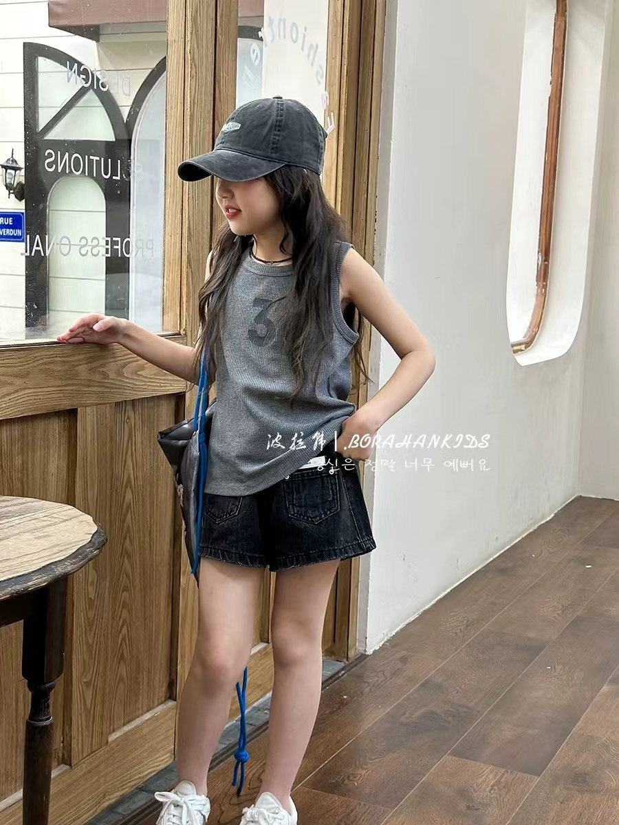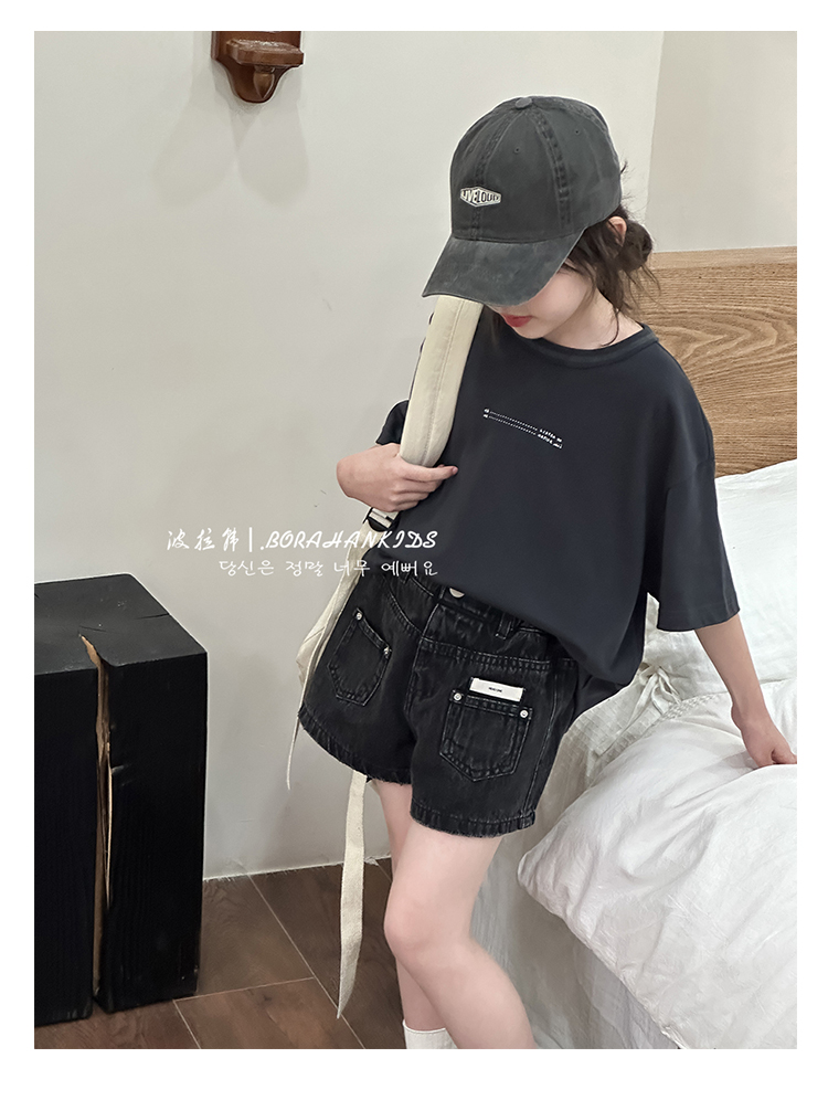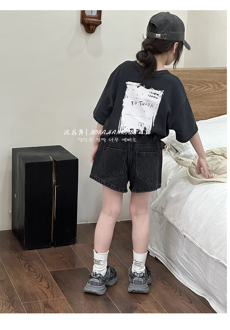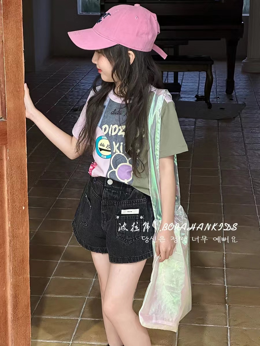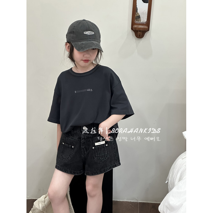 波拉韓童裝女童夏季牛仔短褲2025女孩洋氣熱褲子兒童中大童三分褲