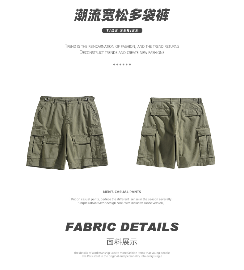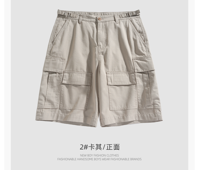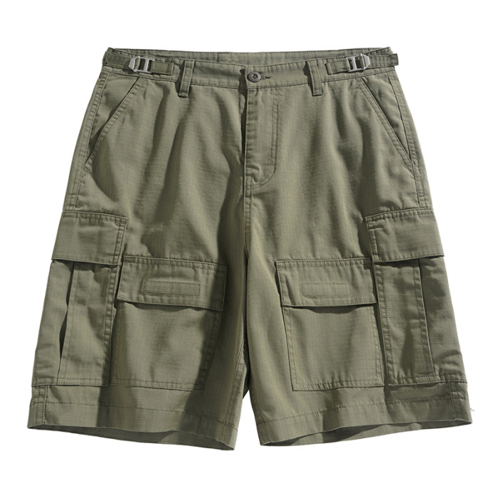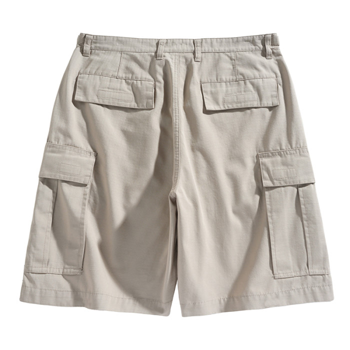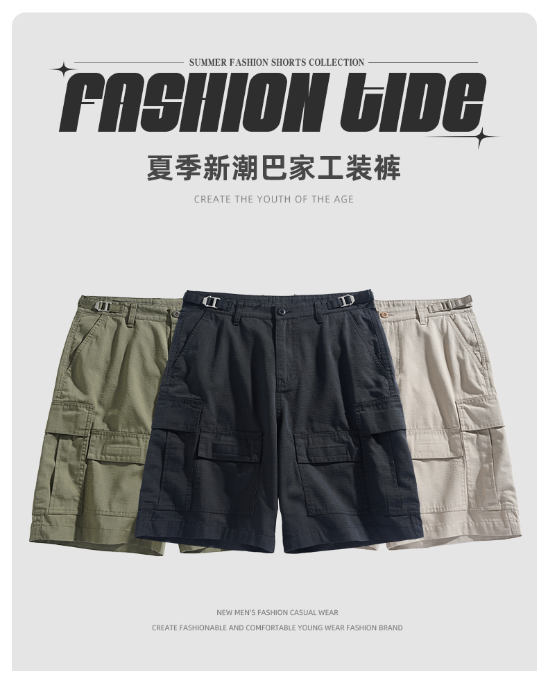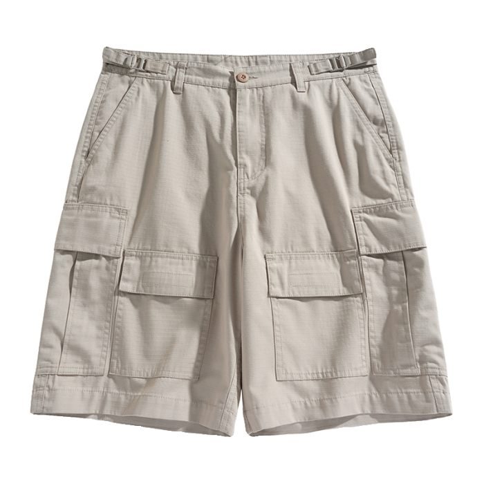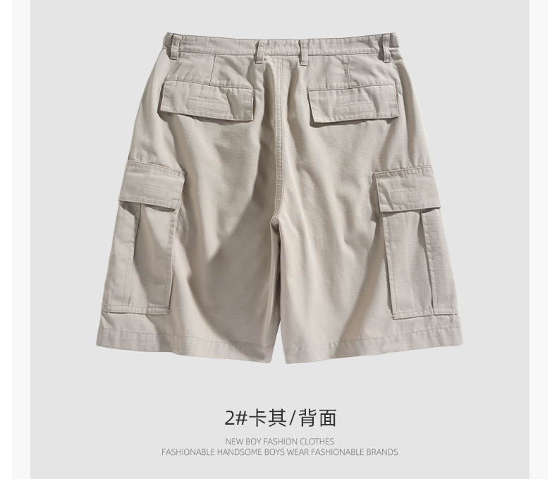 男士水洗全棉多口袋濶腿褲薄款戶外松緊腰夏季休閒直筒工裝五分褲