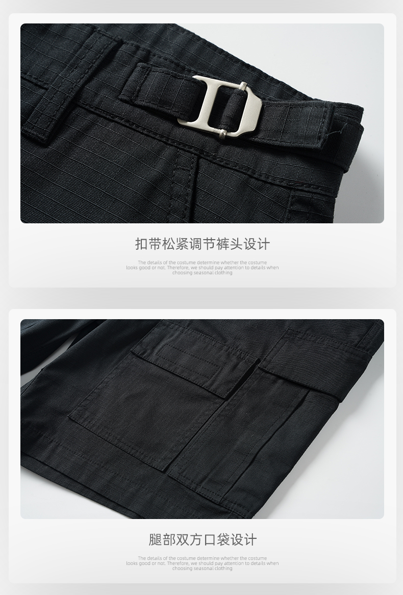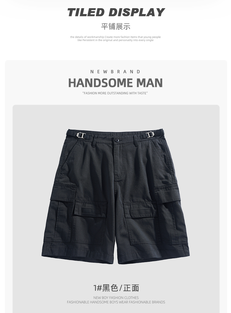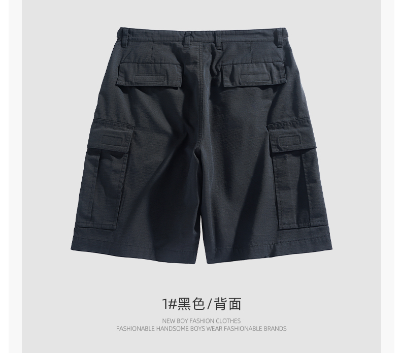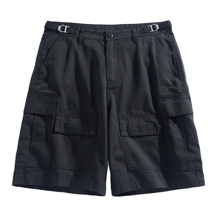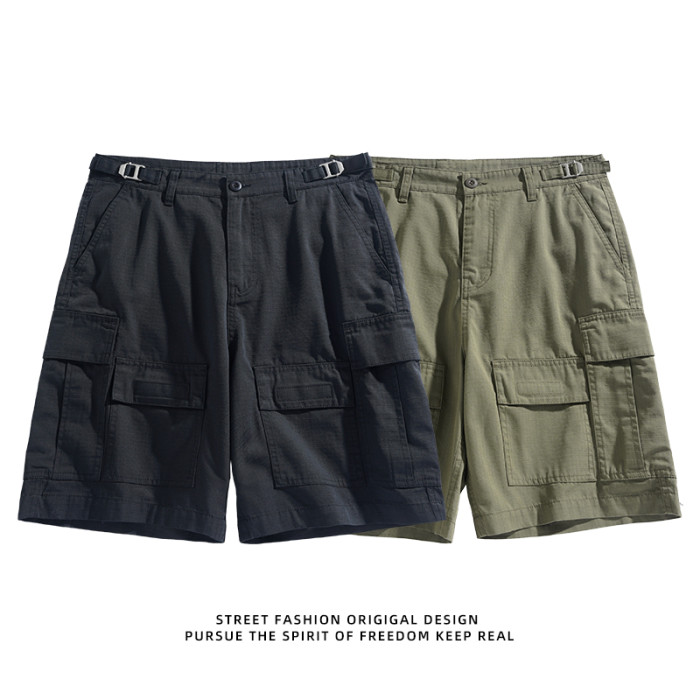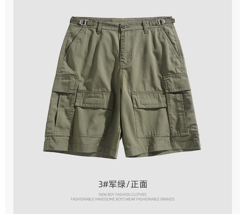 男士水洗全棉多口袋濶腿褲薄款戶外松緊腰夏季休閒直筒工裝五分褲