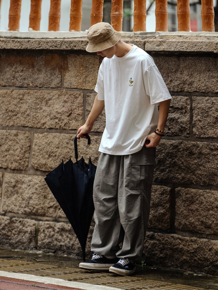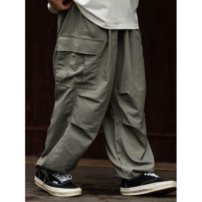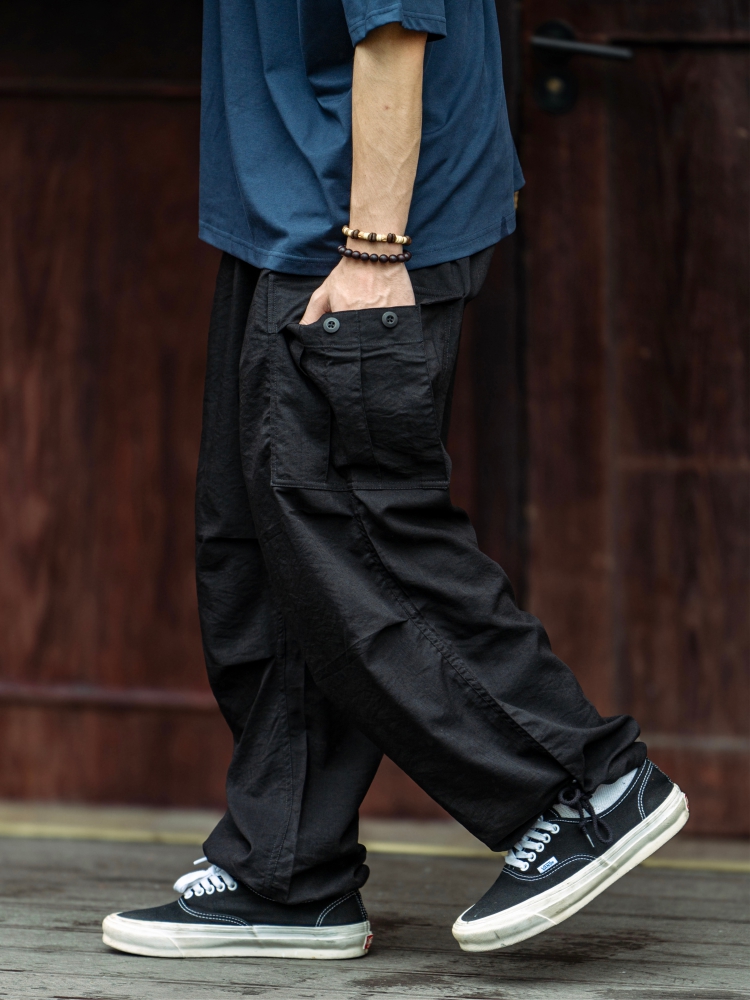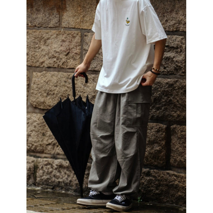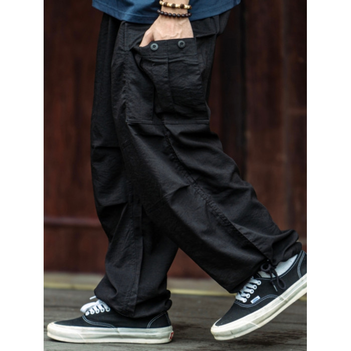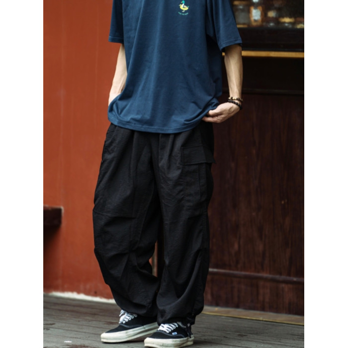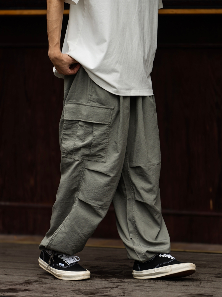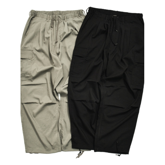 BTB 24SS 日系夏季純色寬松休閒褲男雙褶濶腿褲口袋工裝褲