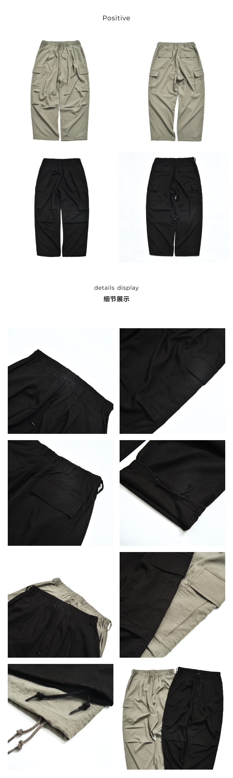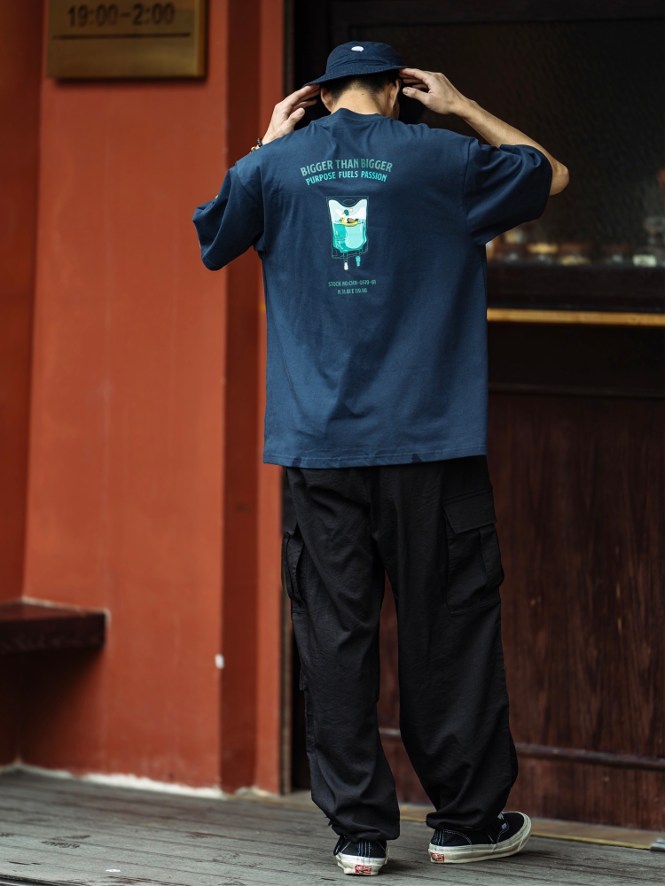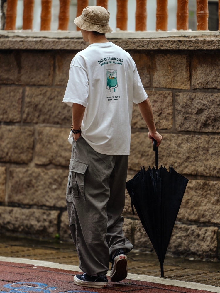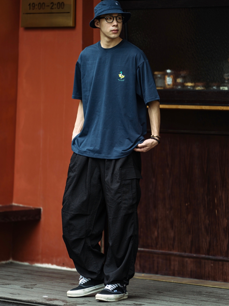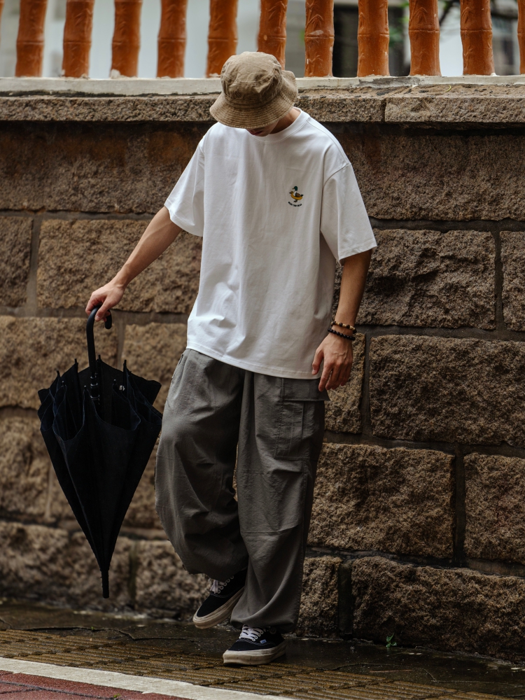 BTB 24SS 日系夏季純色寬松休閒褲男雙褶濶腿褲口袋工裝褲