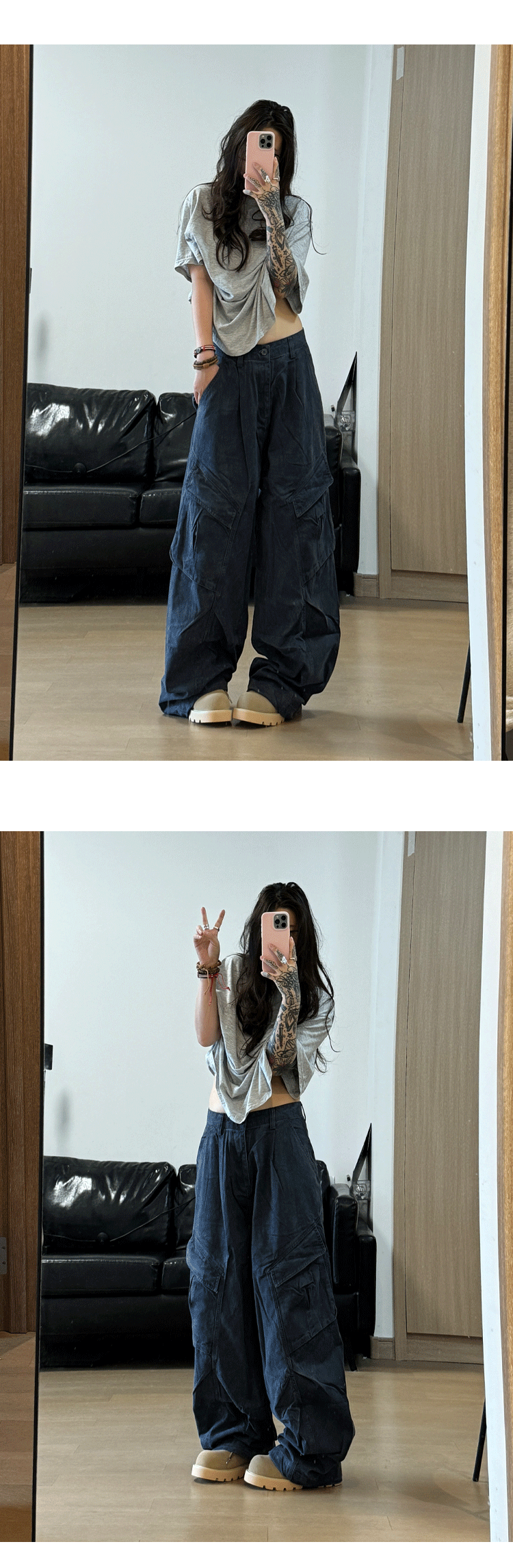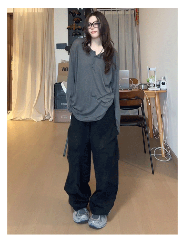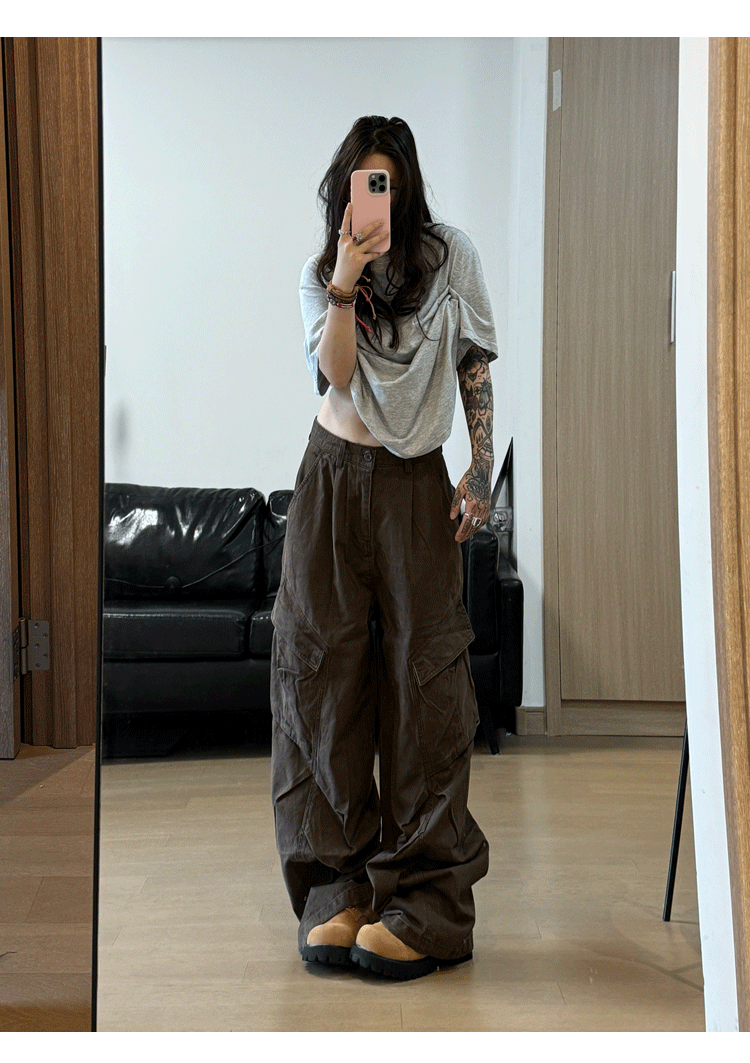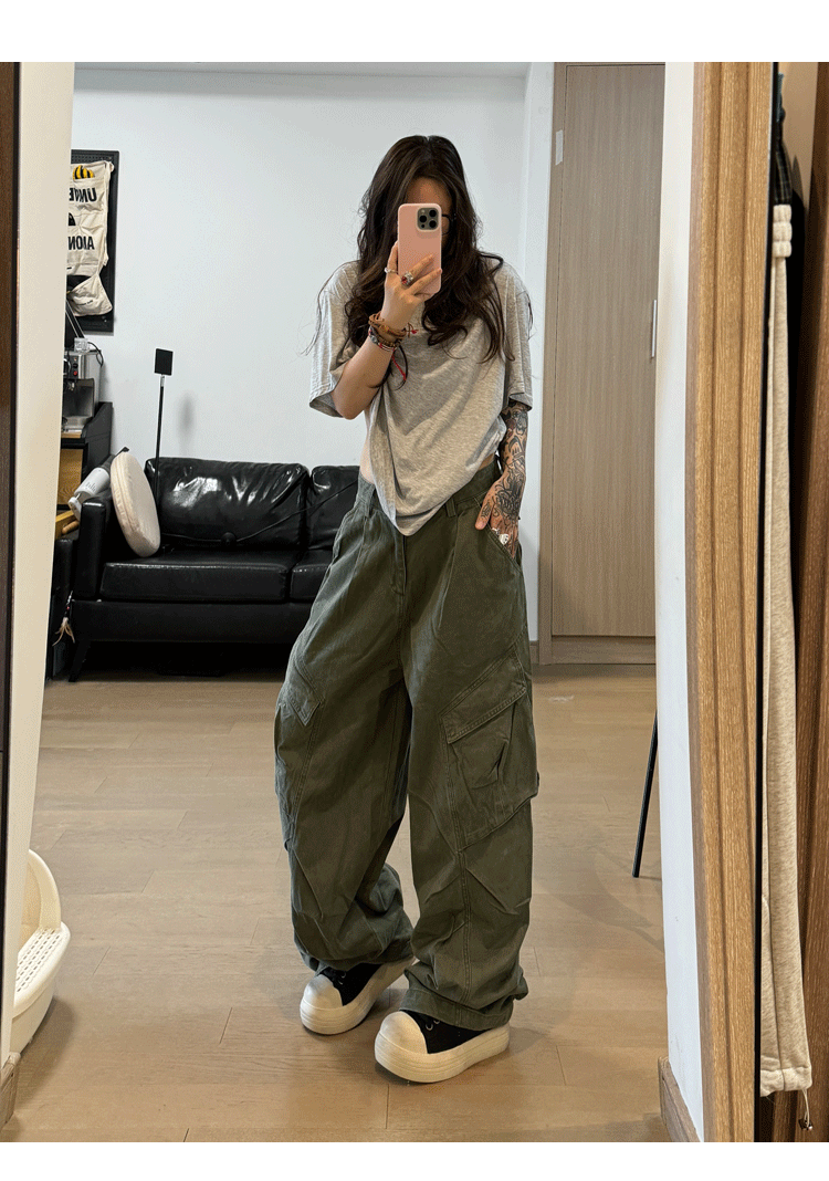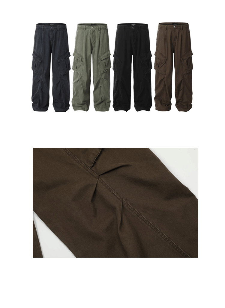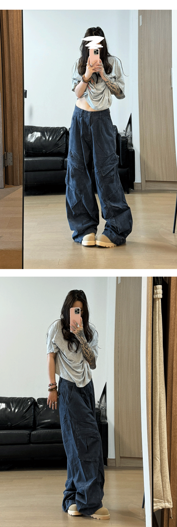 KUBU美式復古工裝褲oversize大口袋百搭濶腿褲男女夏季薄款繖兵褲