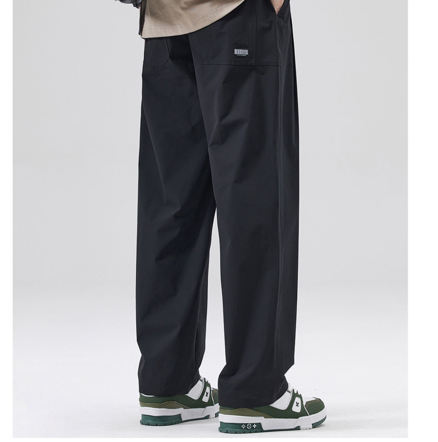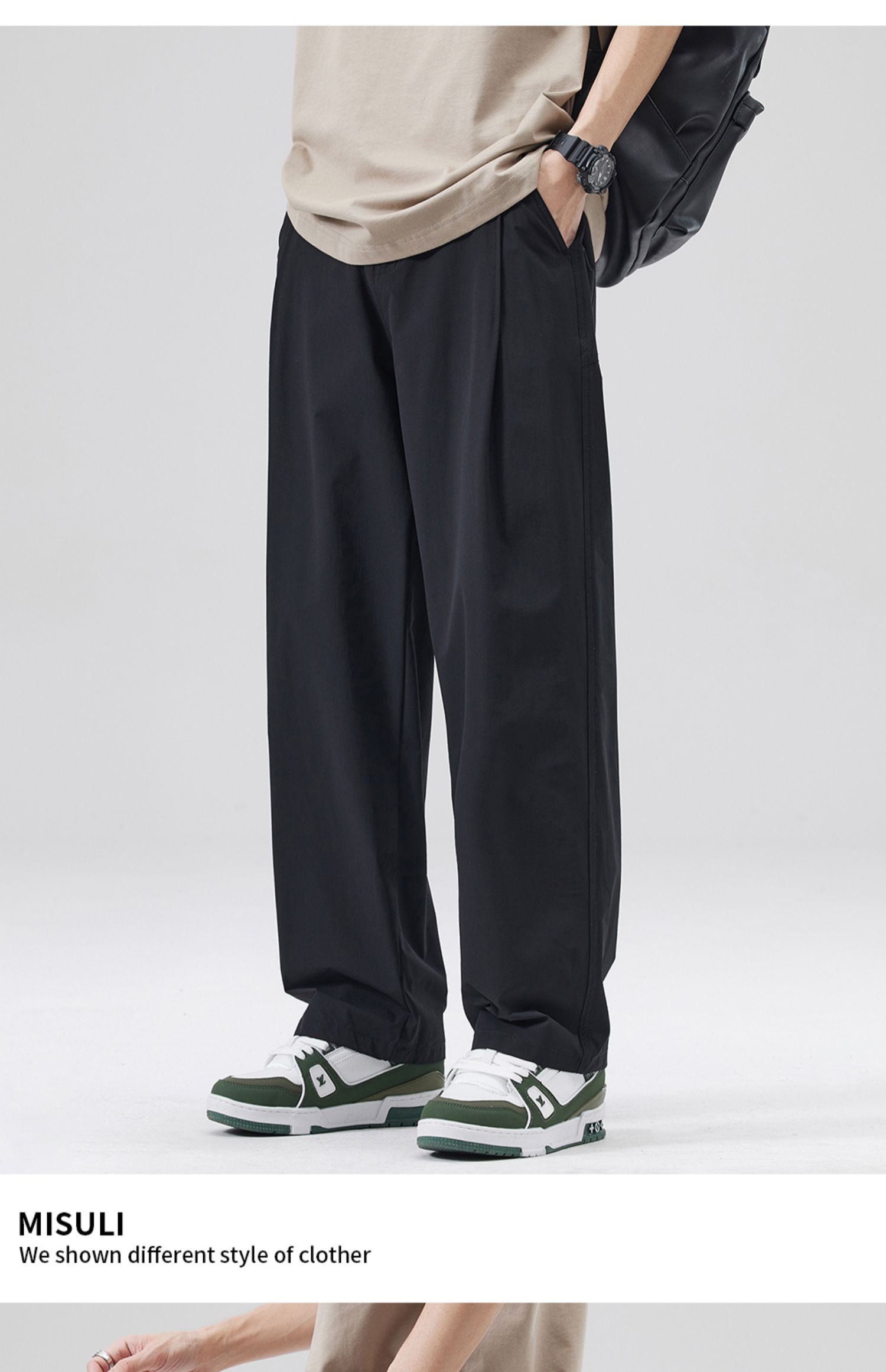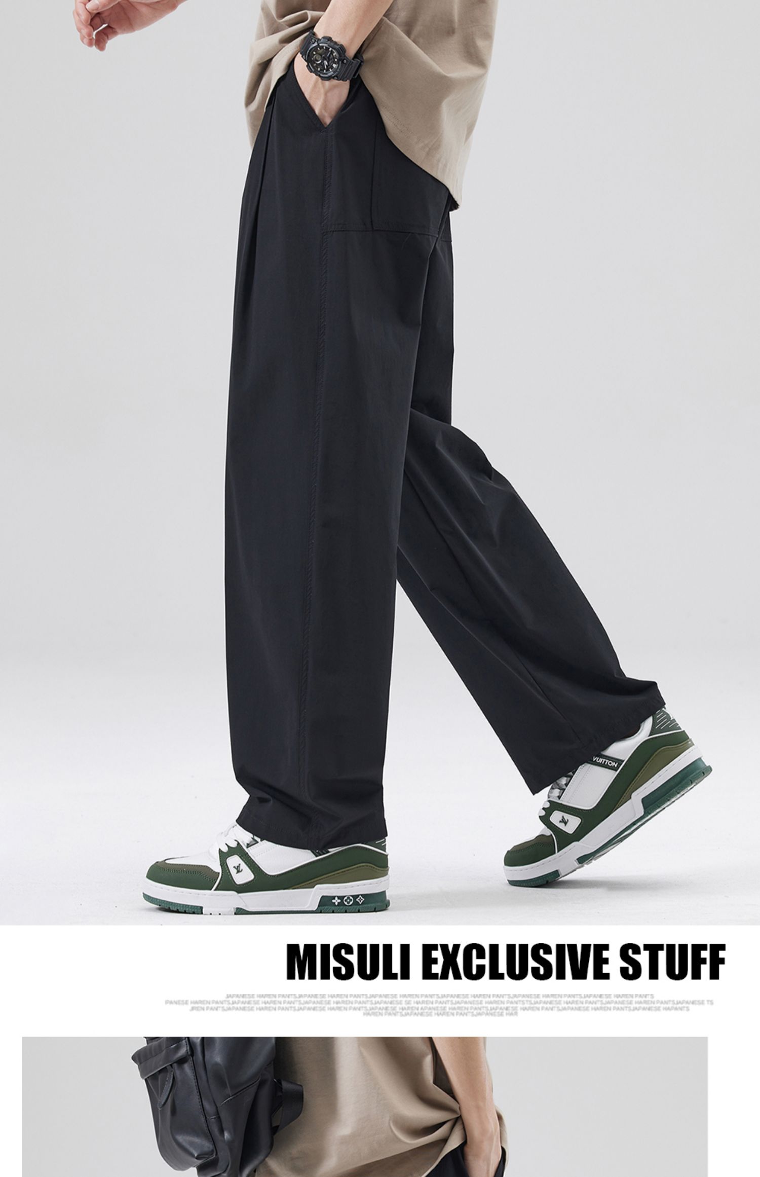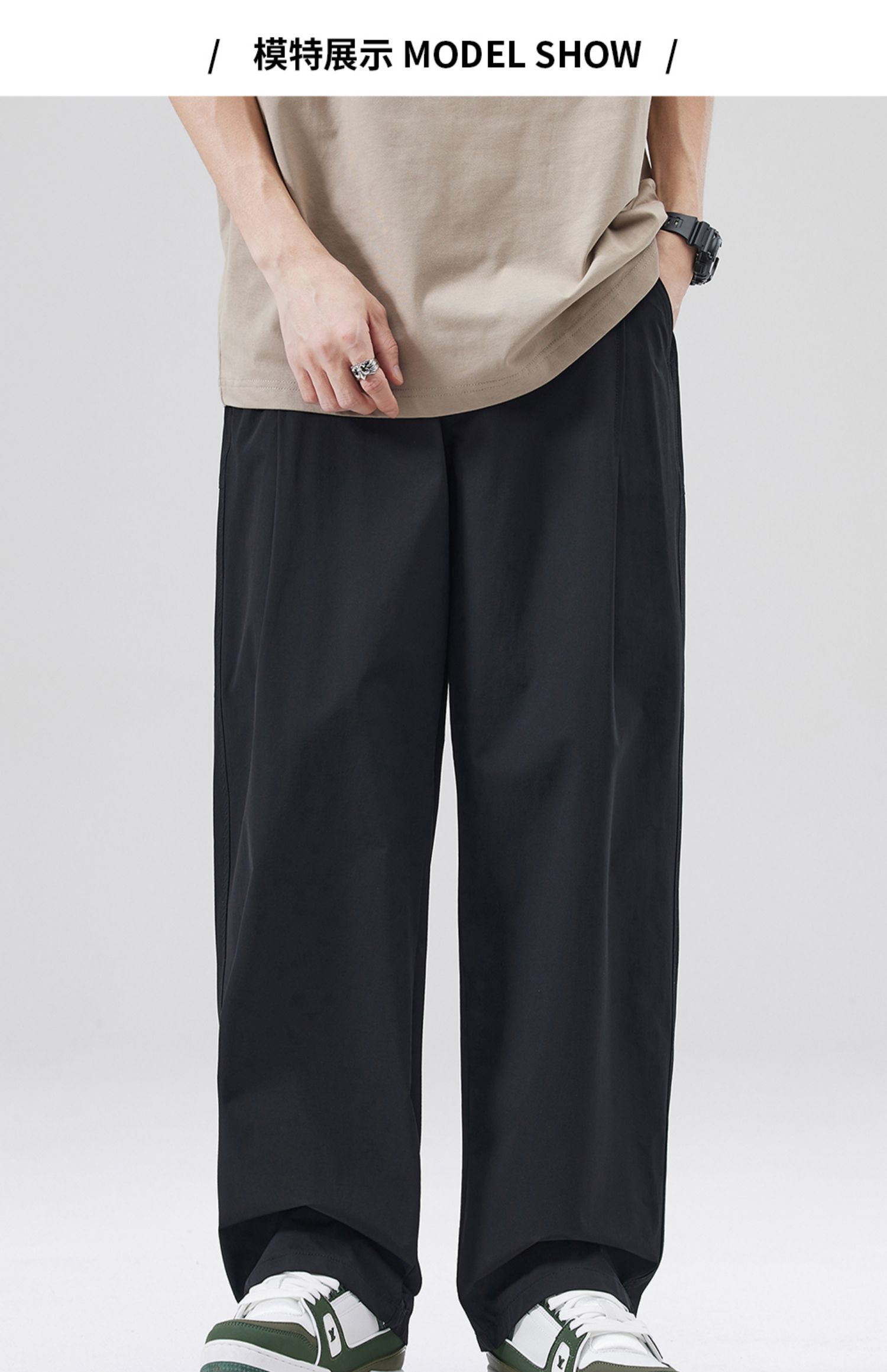 夏季新款冰絲男褲子日系百搭簡約垂墜抖抖褲男士速乾運動濶腿褲潮