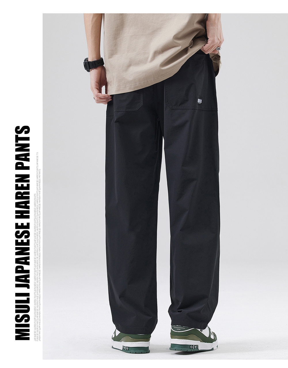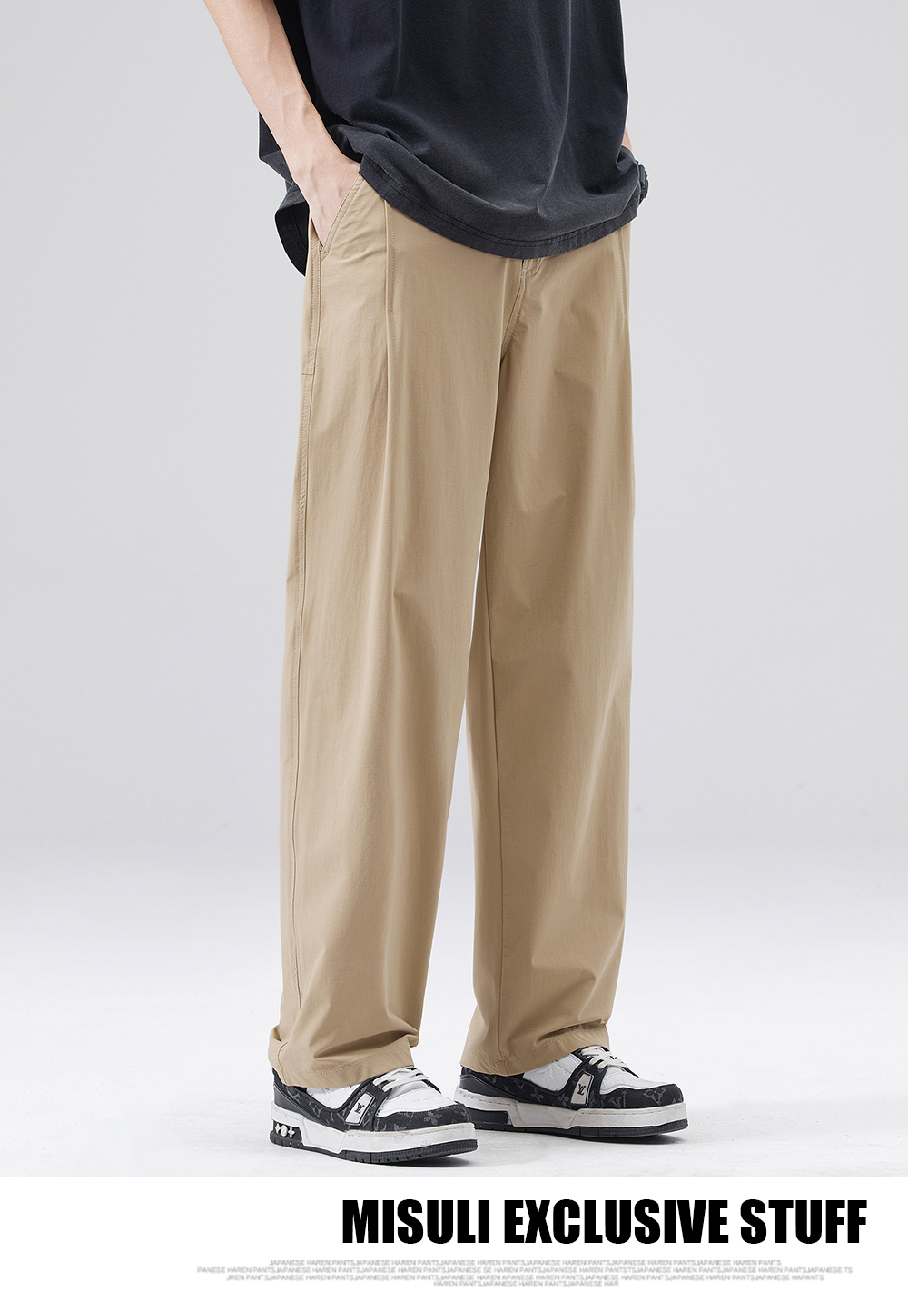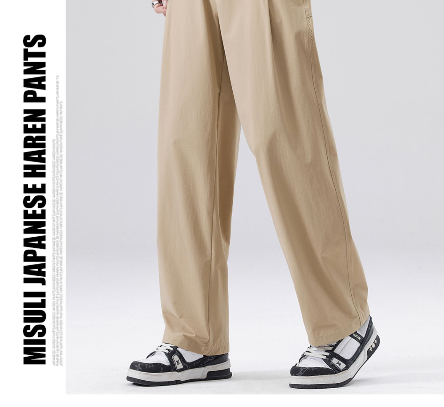 夏季新款冰絲男褲子日系百搭簡約垂墜抖抖褲男士速乾運動濶腿褲潮