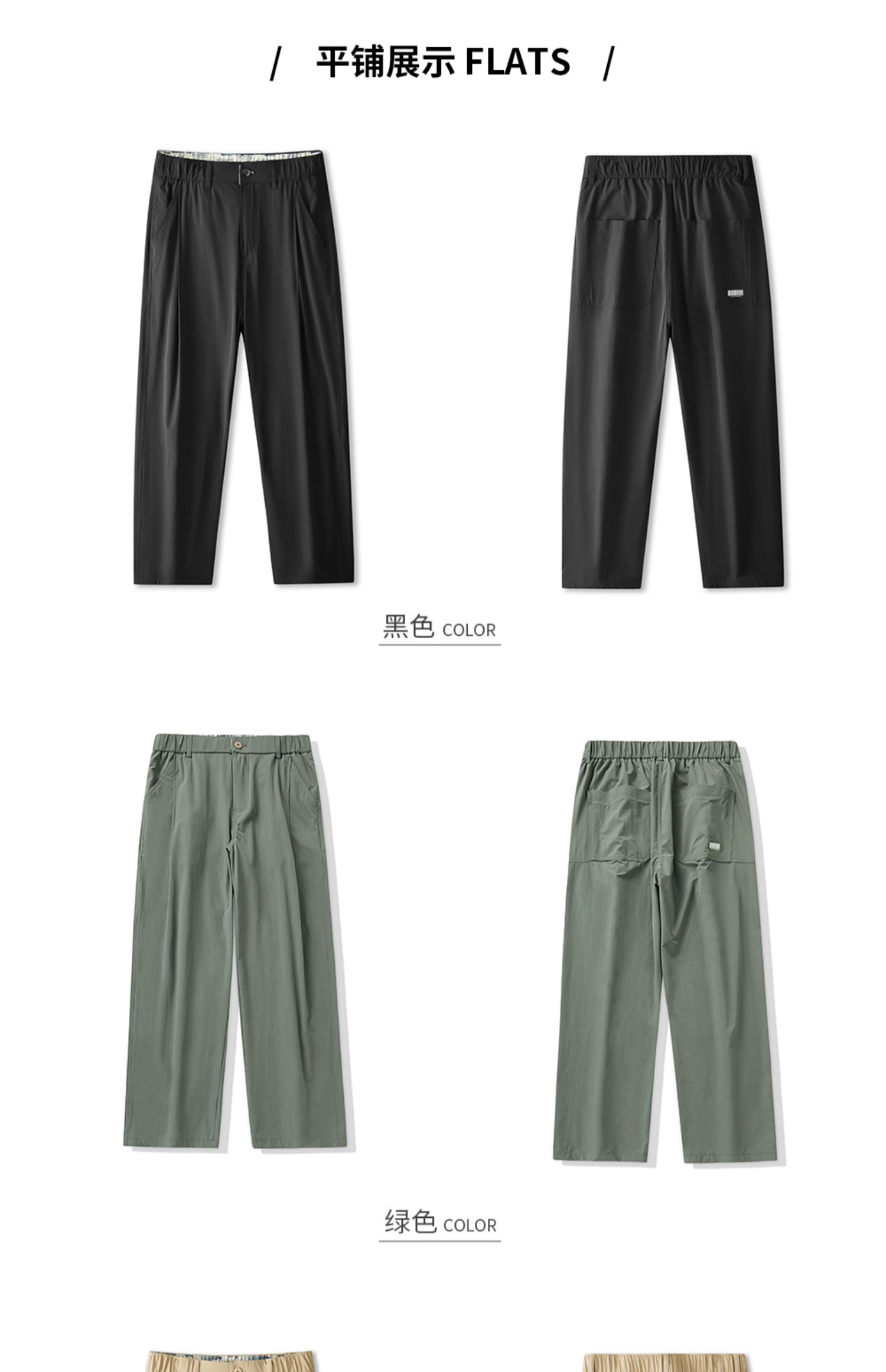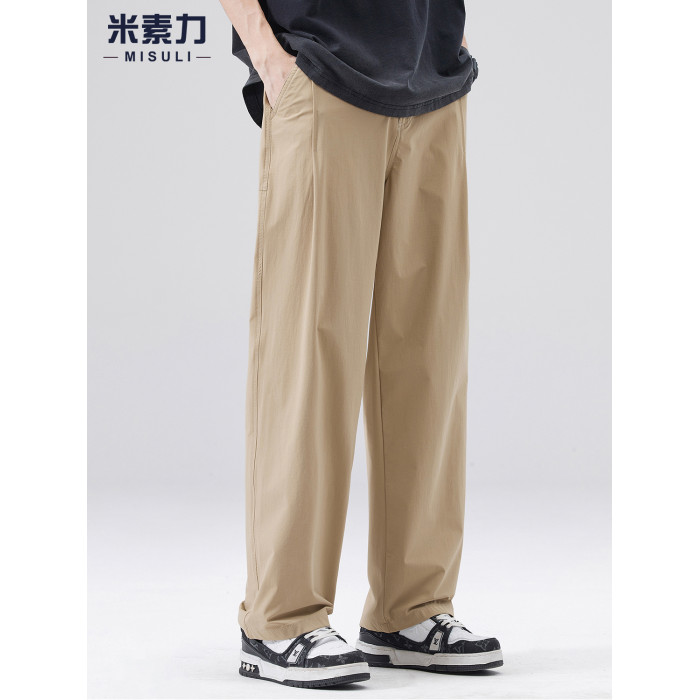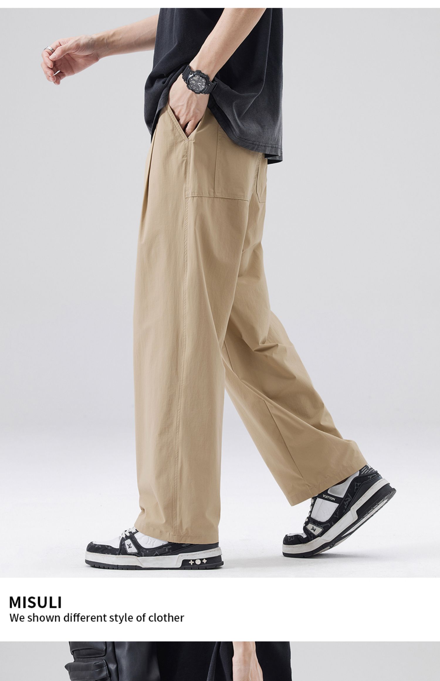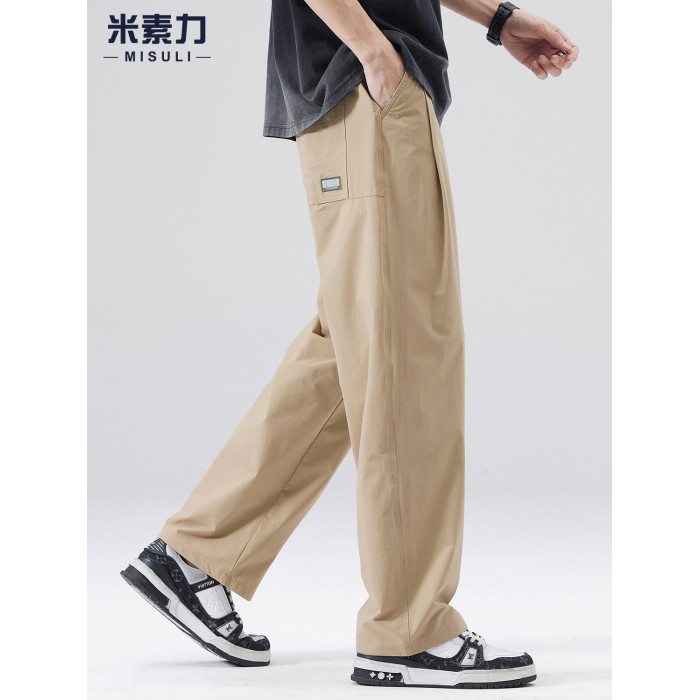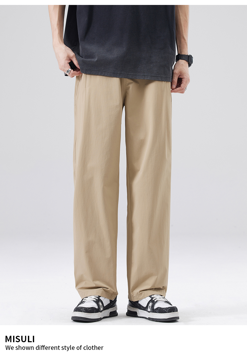 夏季新款冰絲男褲子日系百搭簡約垂墜抖抖褲男士速乾運動濶腿褲潮