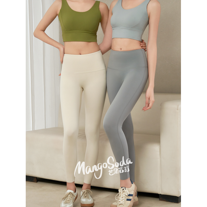 MangoSoda 高腰提臀萊卡瑜伽褲防卷邊無T線跑步健身普拉提運動褲