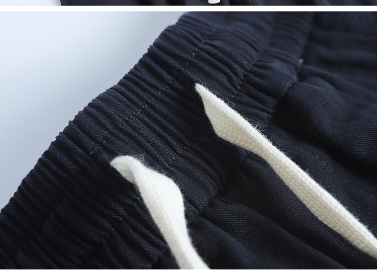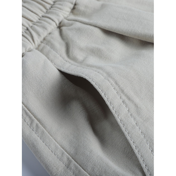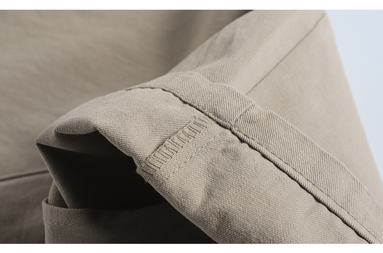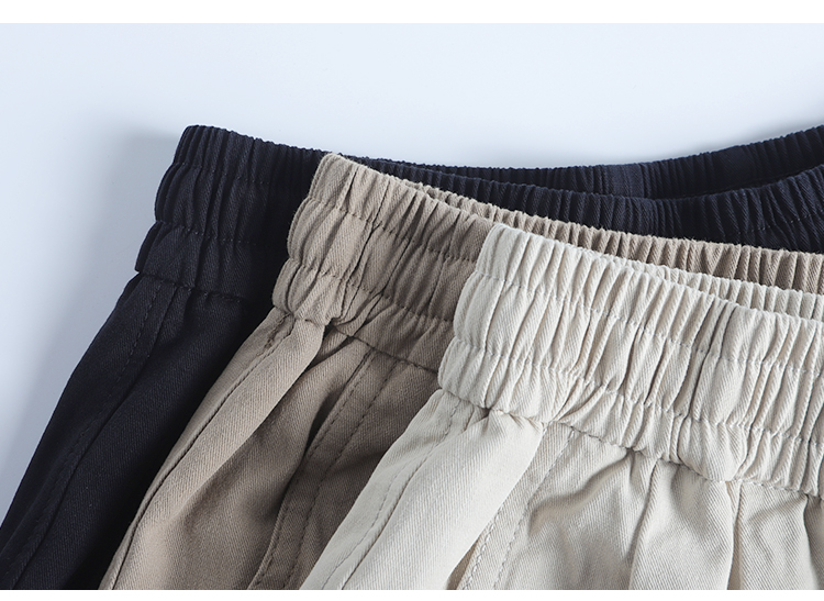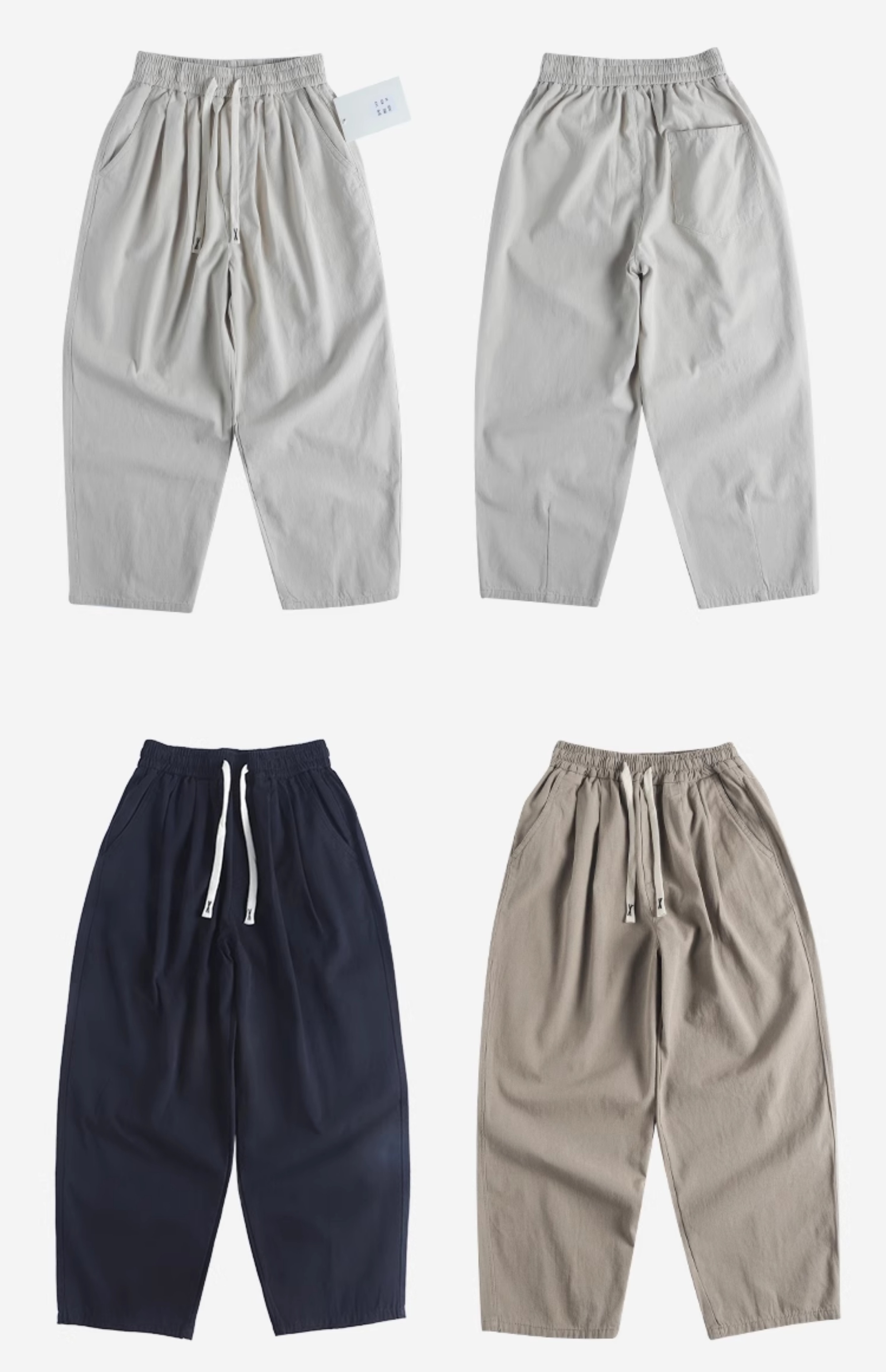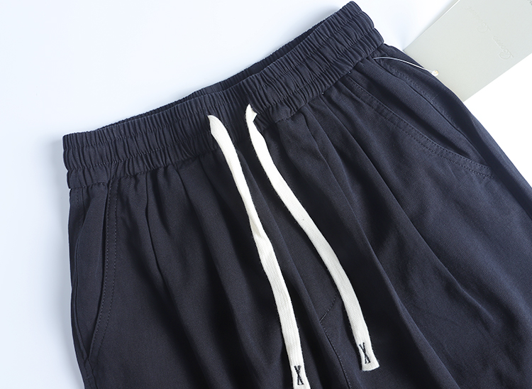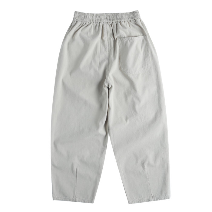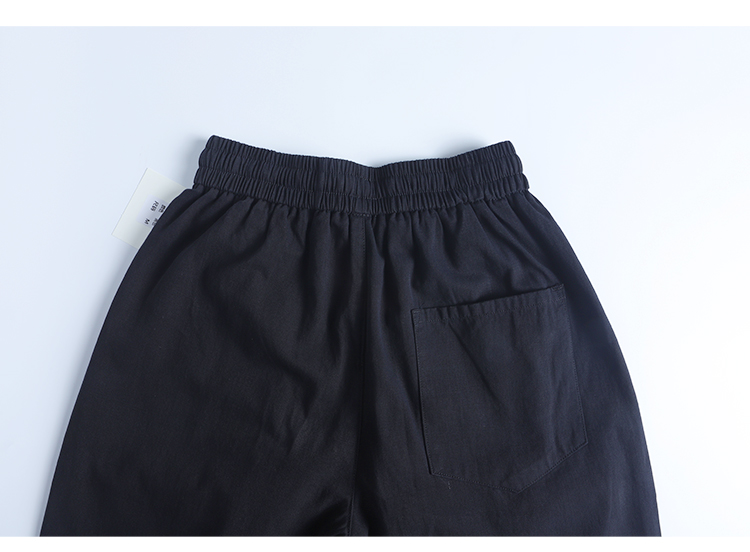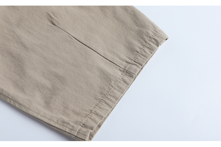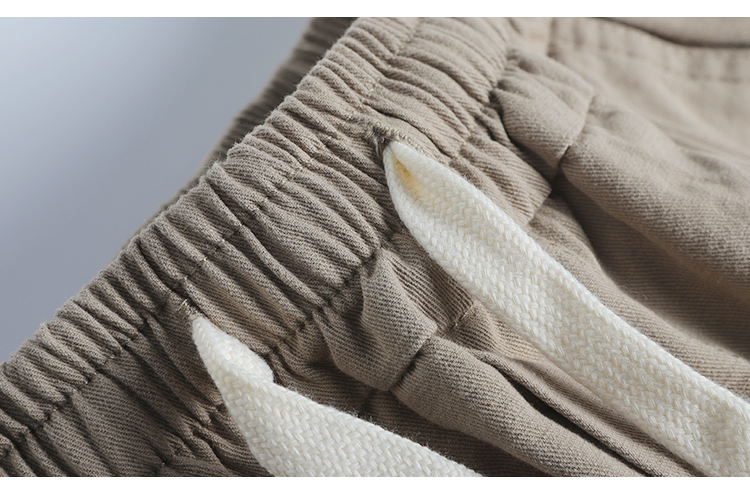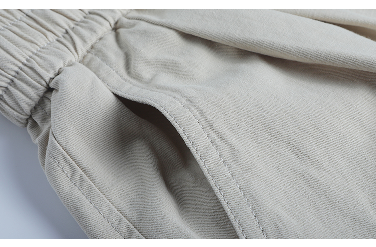 春季日系復古褶皺純棉卡其色濶腿褲寬松純色透氣休閒九分褲蘿蔔褲