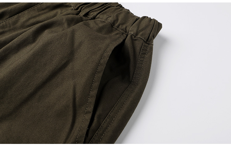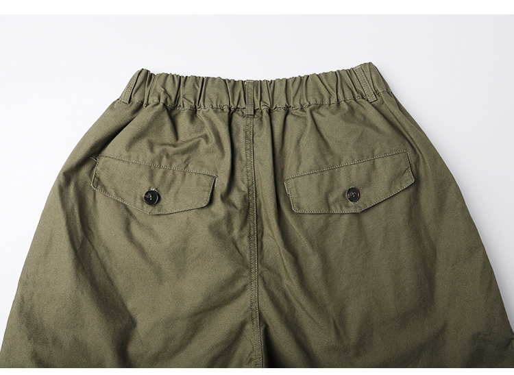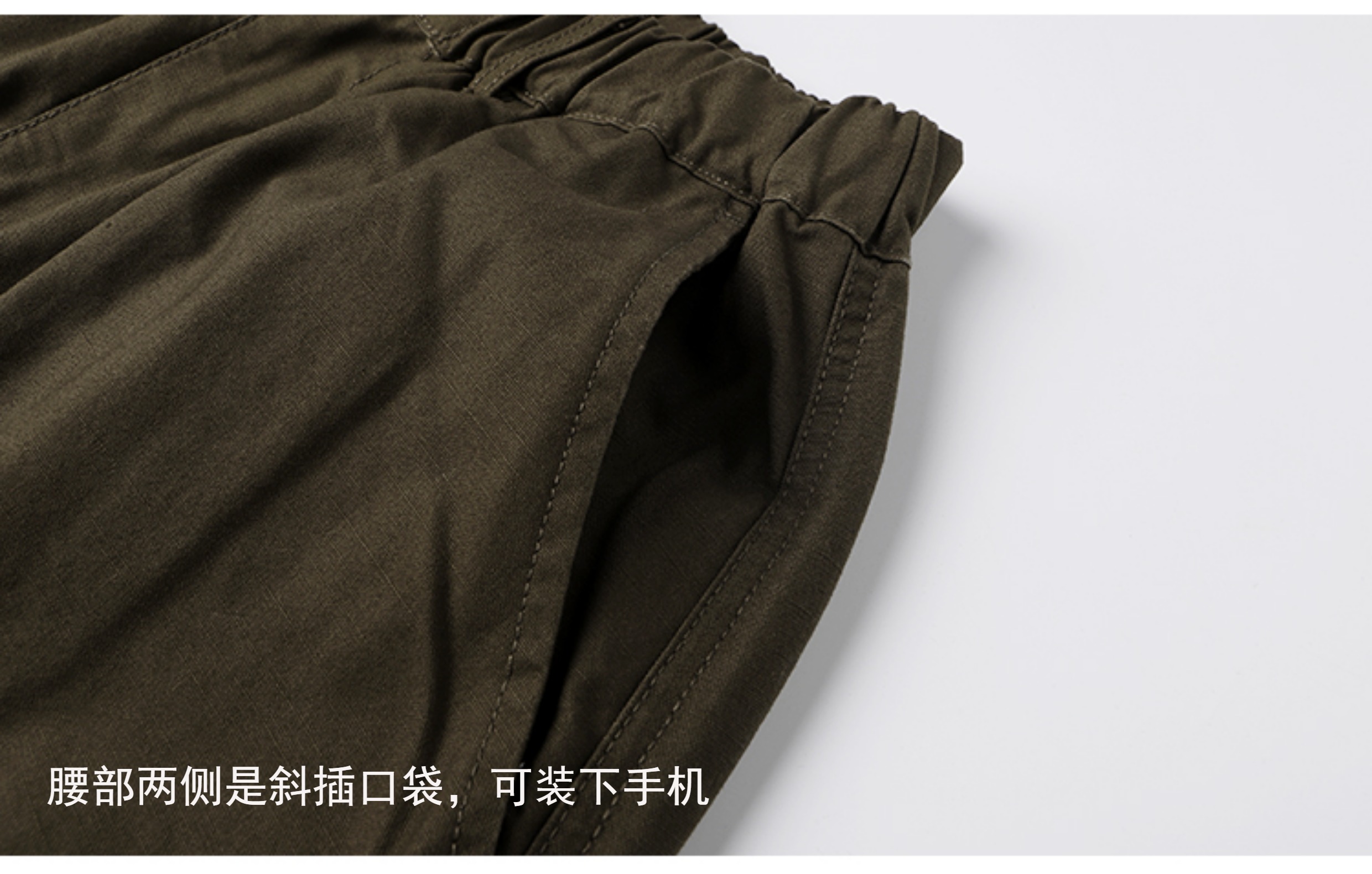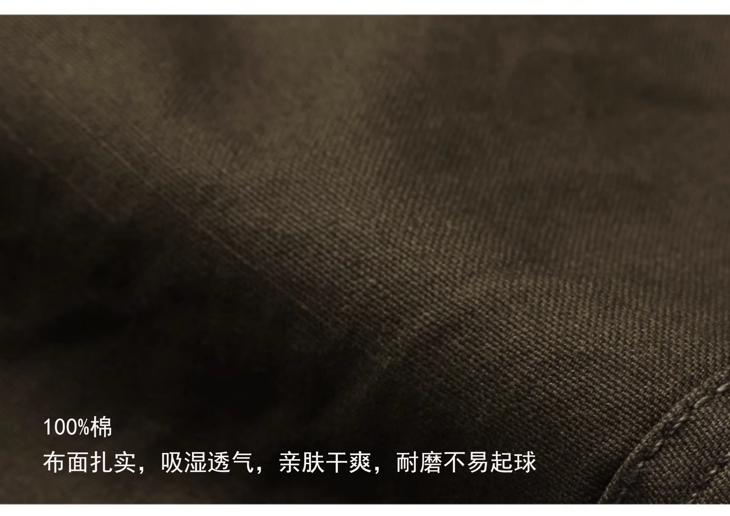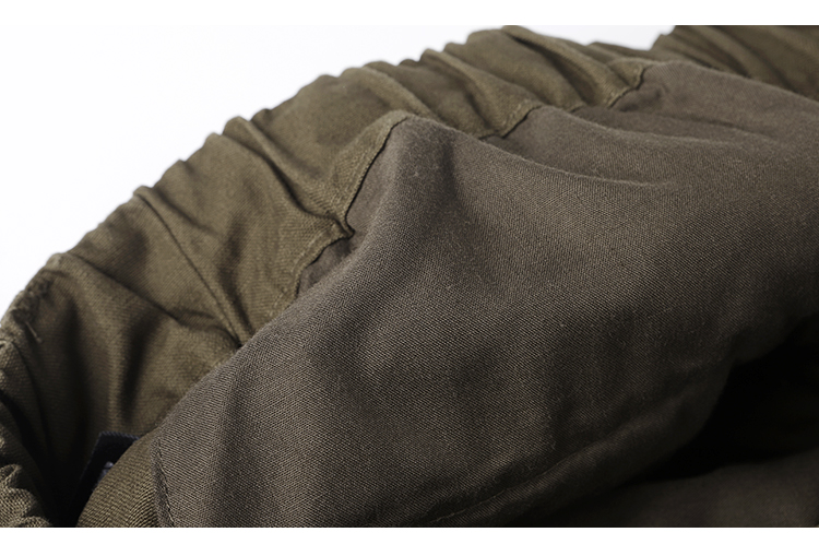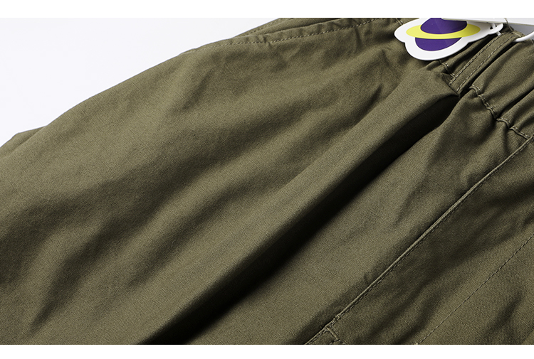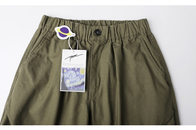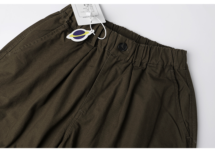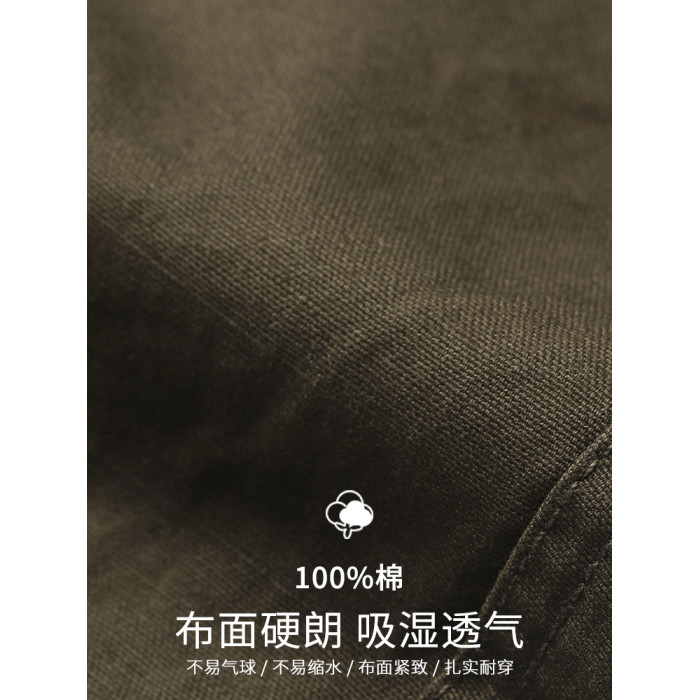 春季純棉美式復古工裝褲男抽繩松緊腰軍綠色濶腿褲寬松百搭長褲潮
