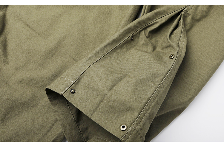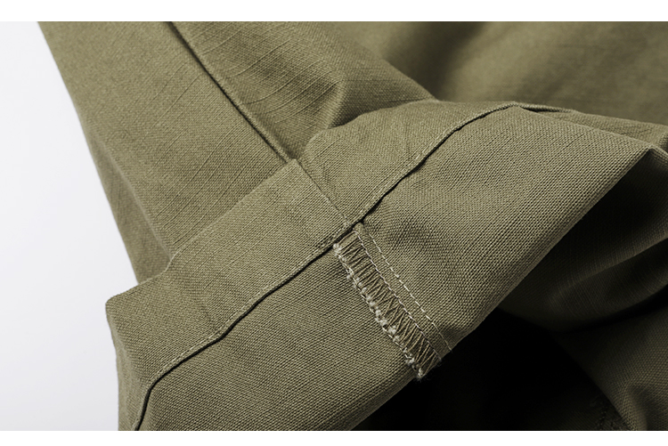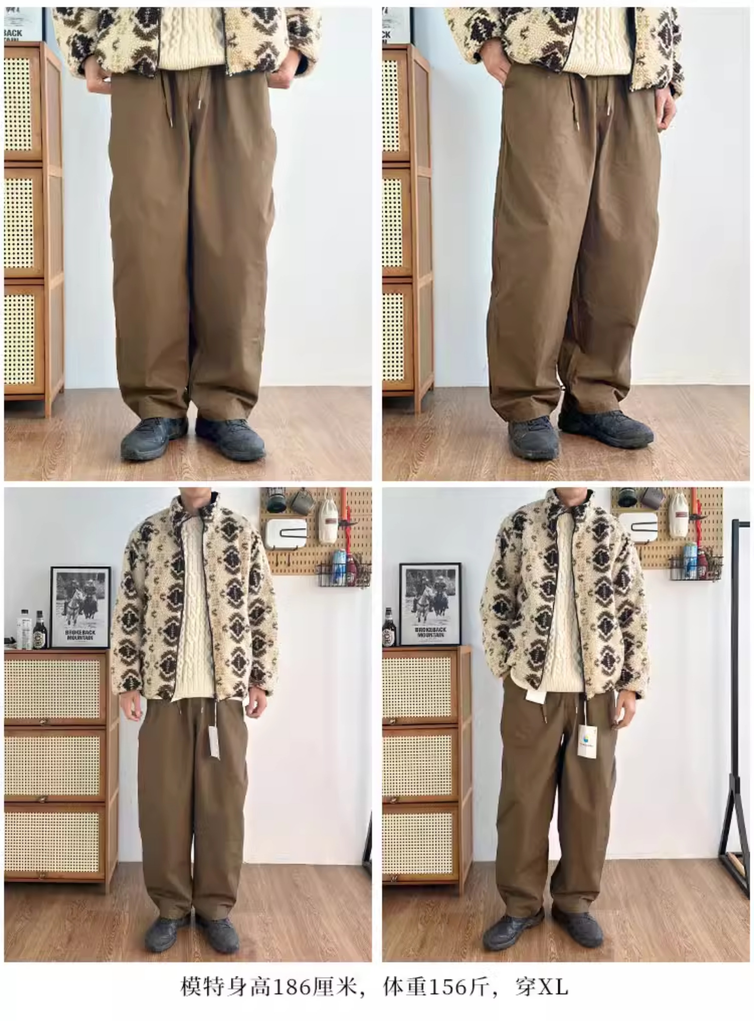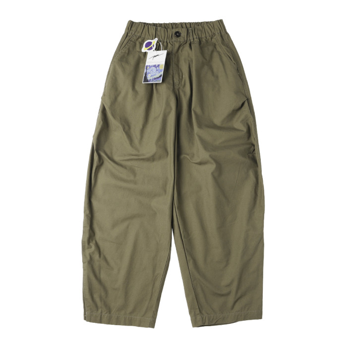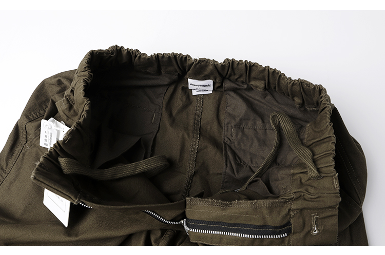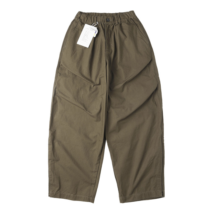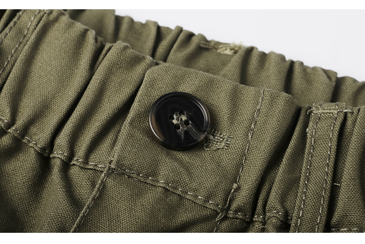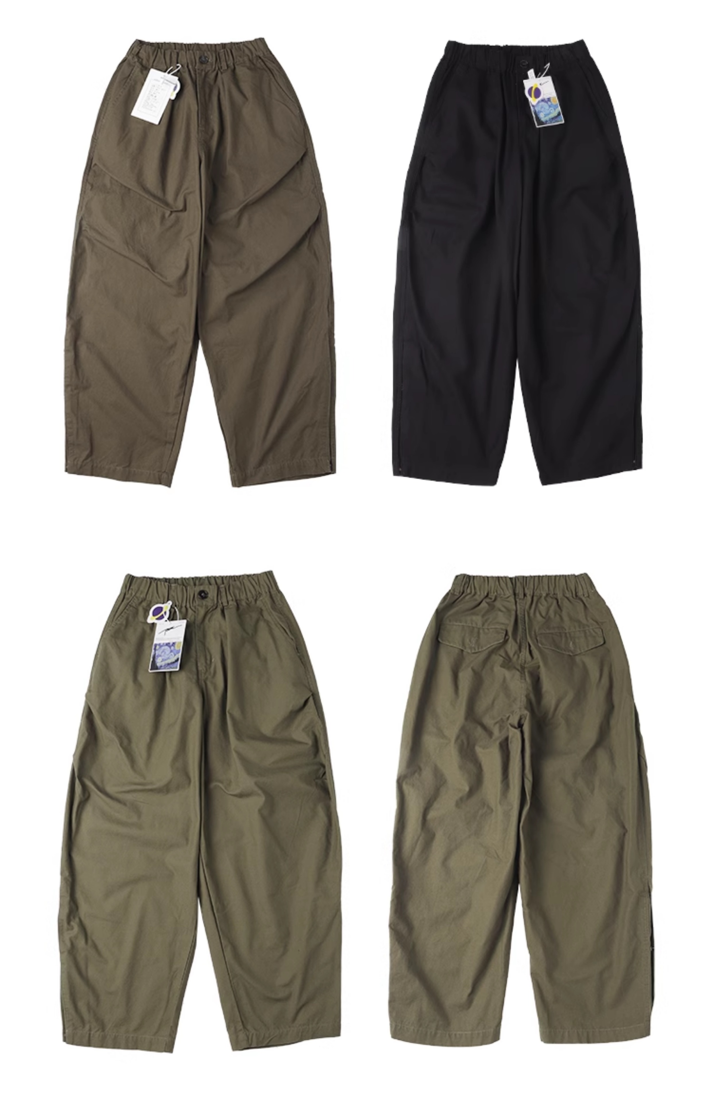 春季純棉美式復古工裝褲男抽繩松緊腰軍綠色濶腿褲寬松百搭長褲潮