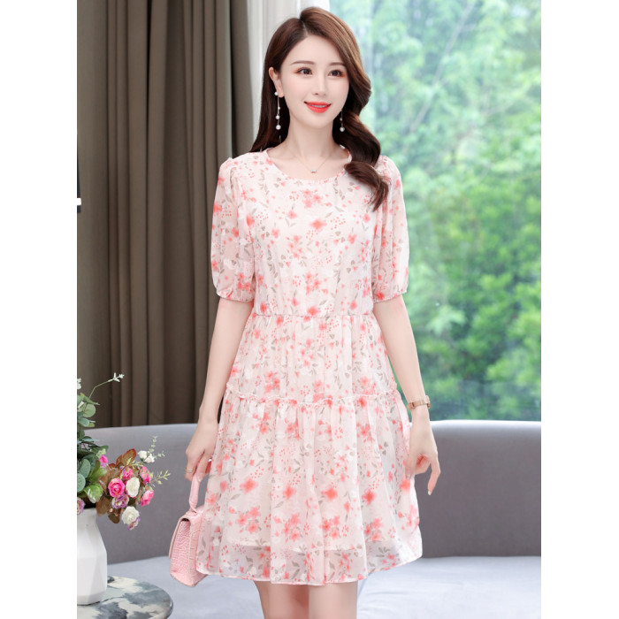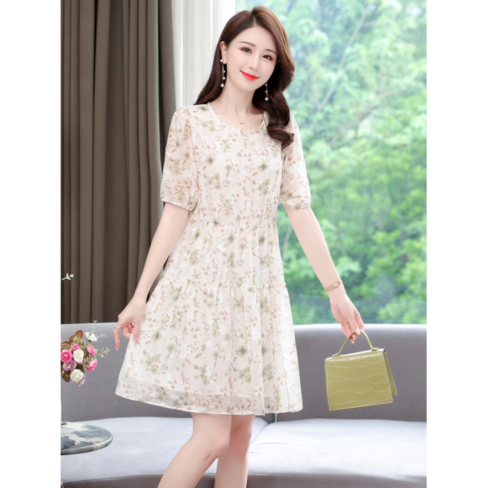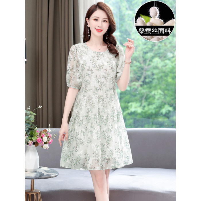 杭州真絲連衣裙女2025夏季新款流行爆款小個子媽媽桑蠶絲碎花裙子