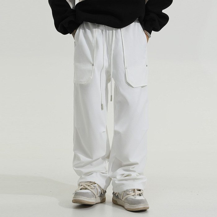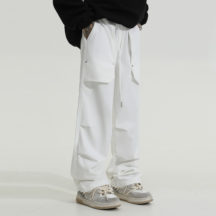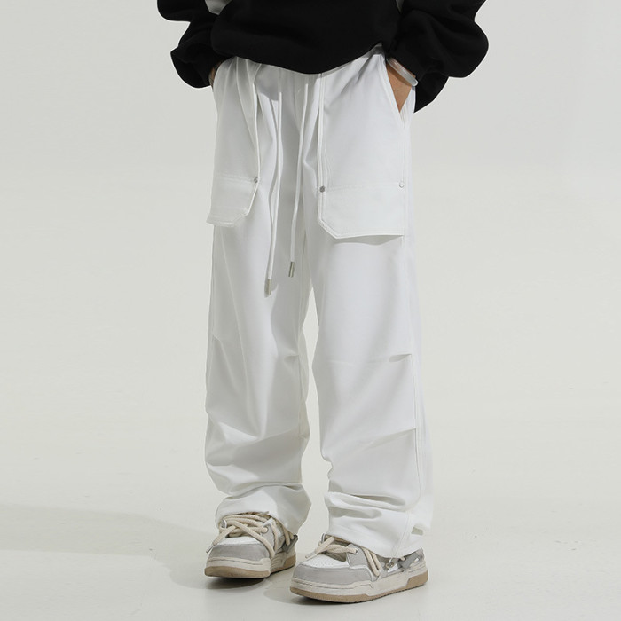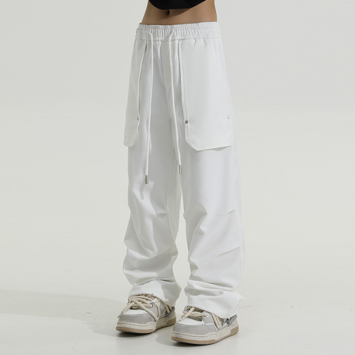 美式潮牌柳丁繖兵褲秋季新款直筒寬松設計感大口袋工裝嘻哈濶腿褲
