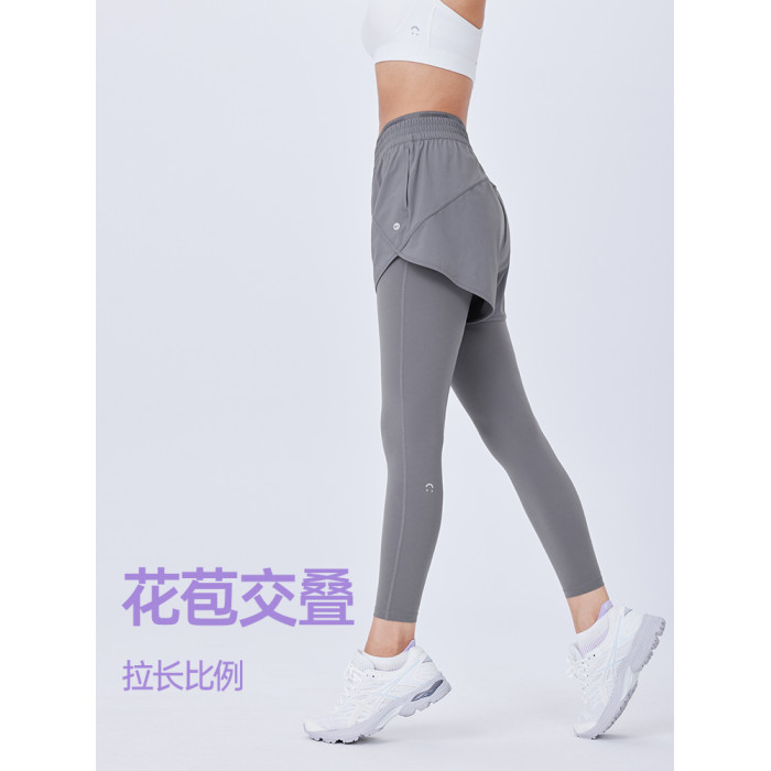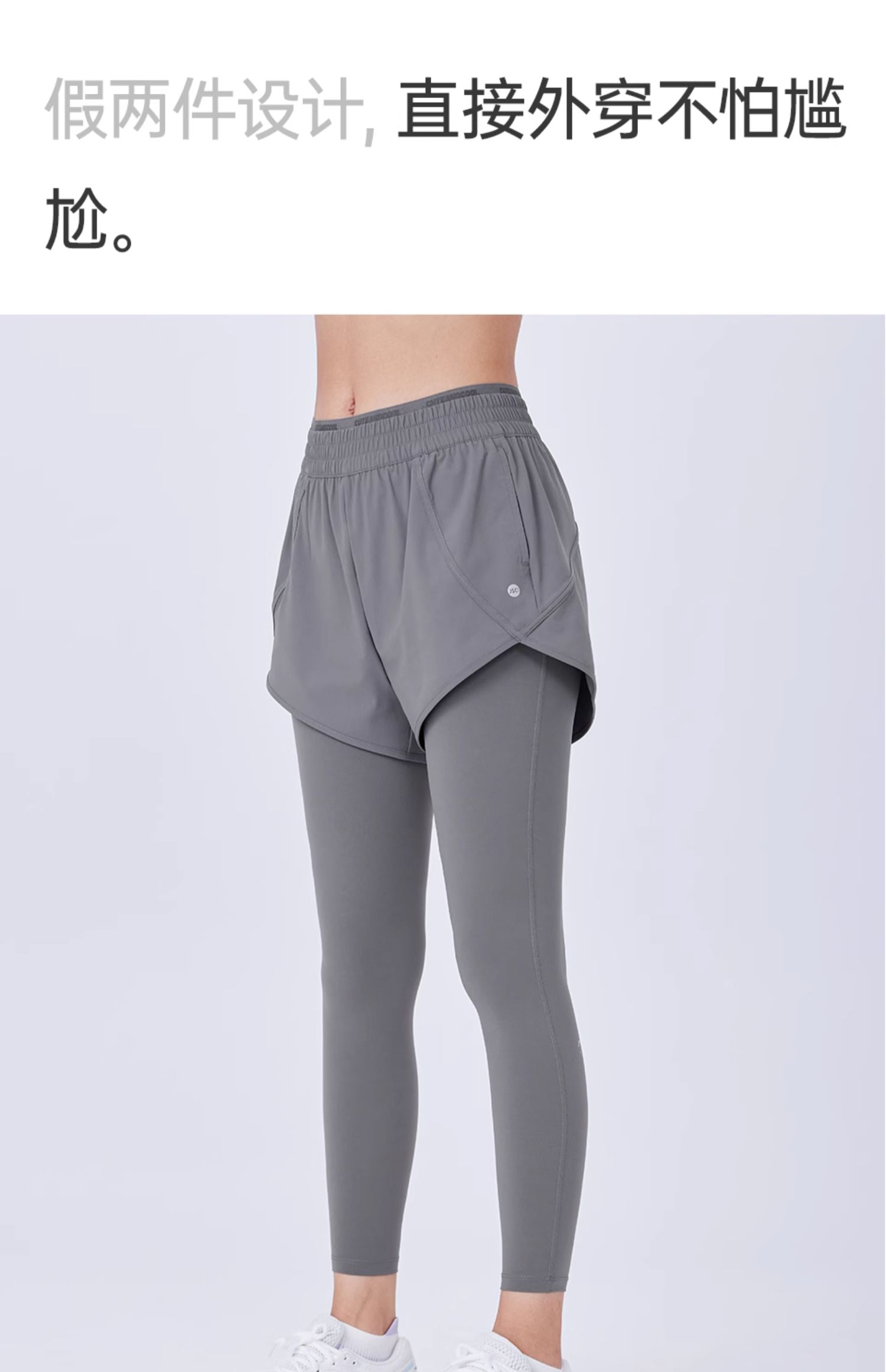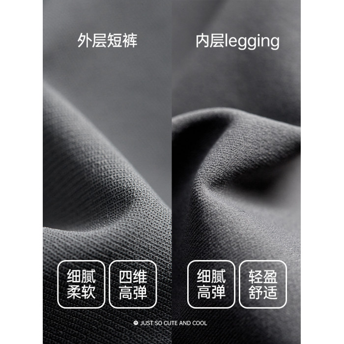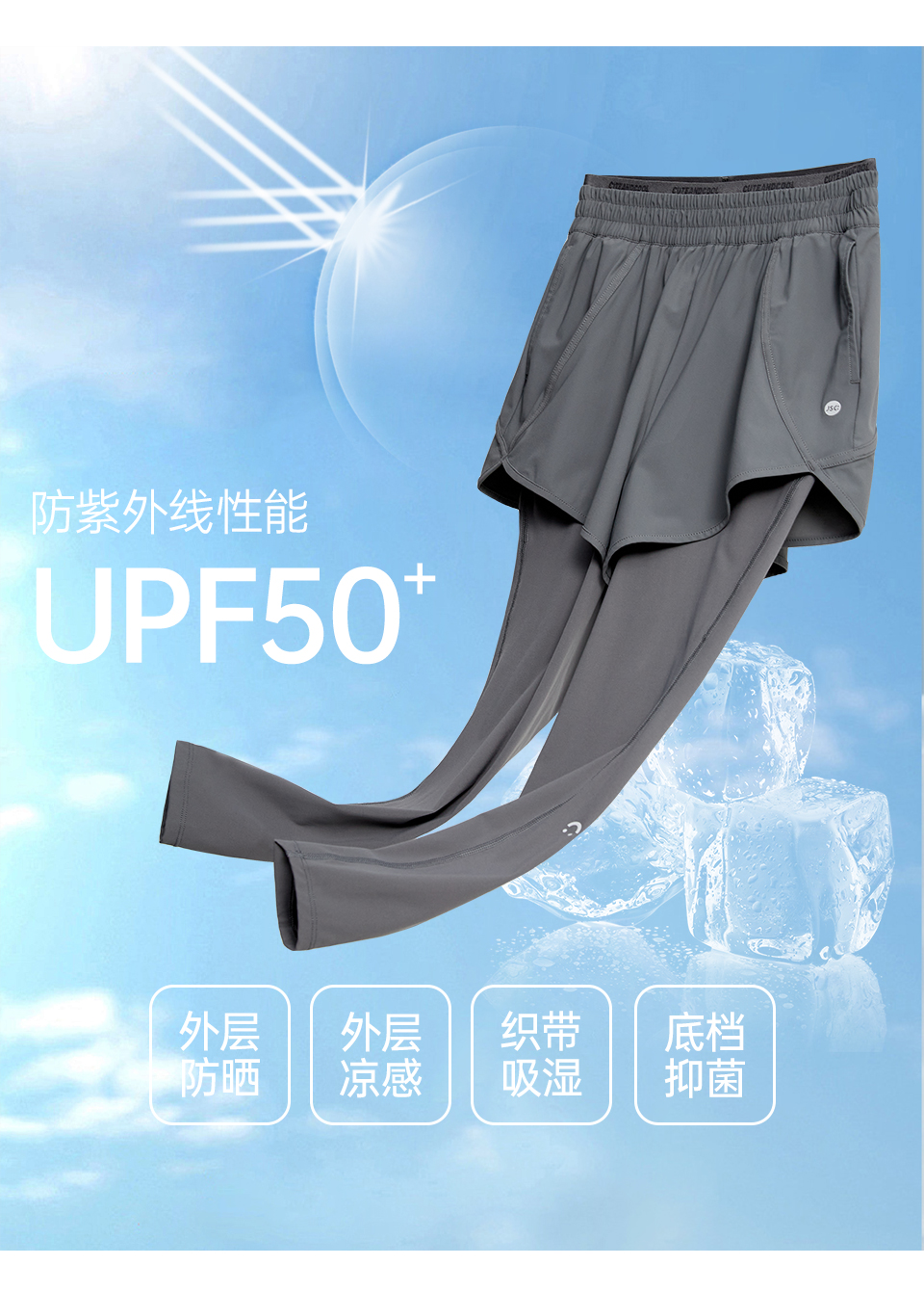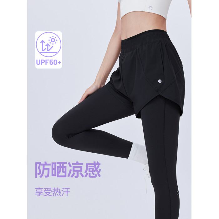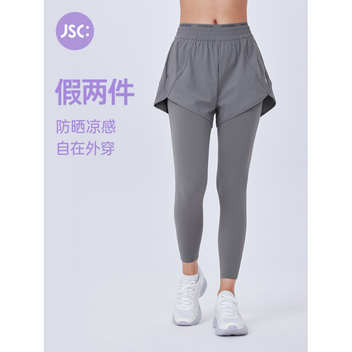 JSC假兩件防曬涼感健身褲運動帶口袋高腰提臀防走光戶外運動褲女