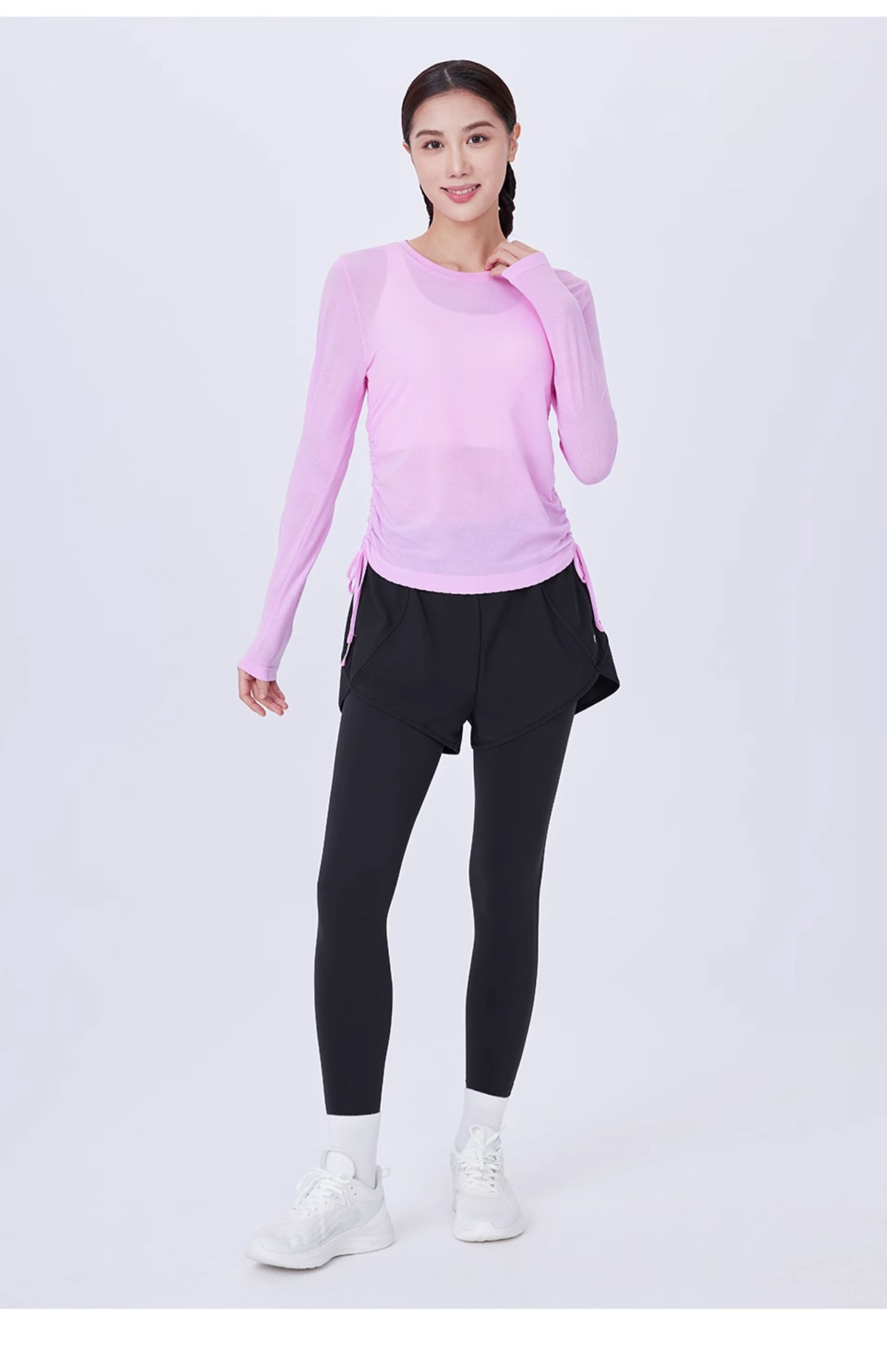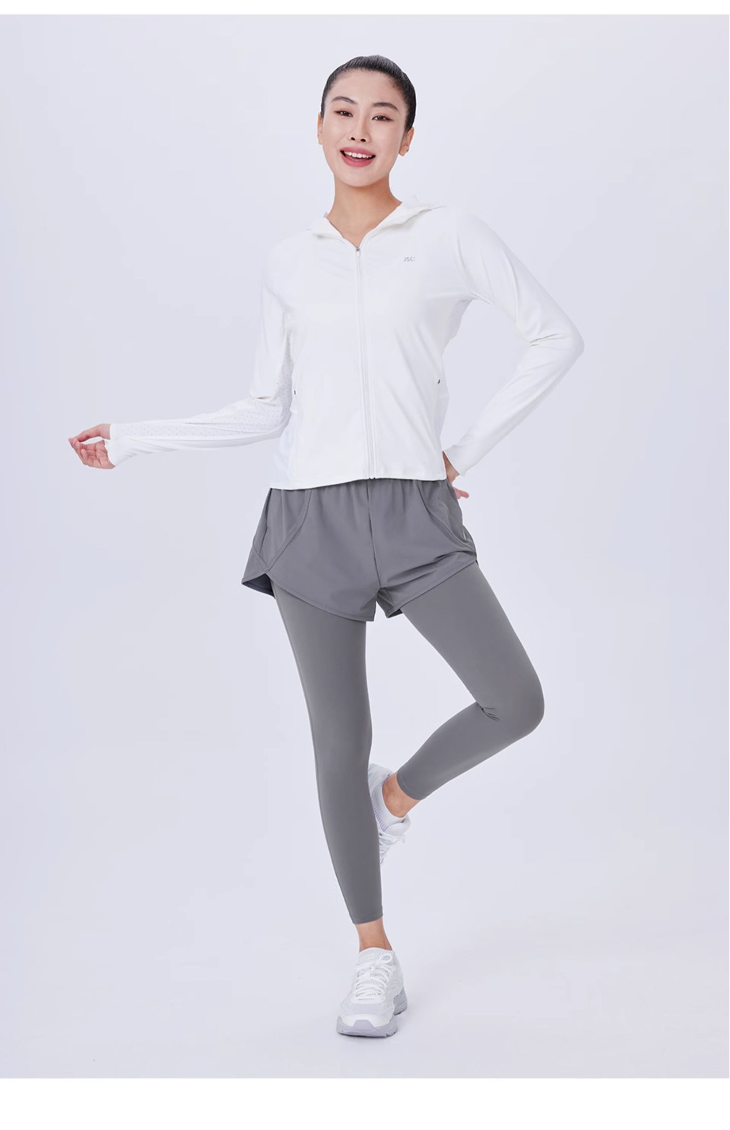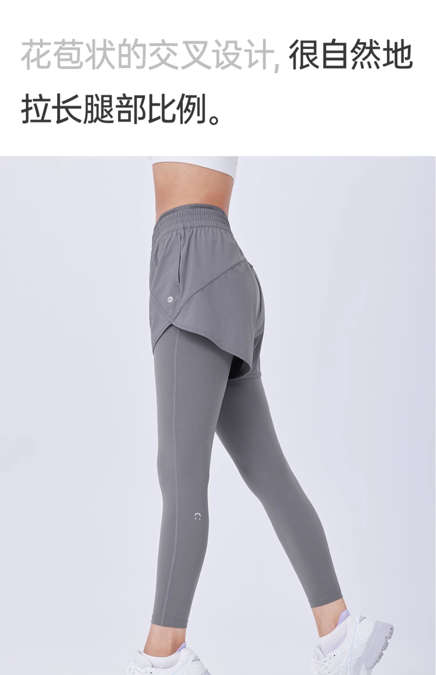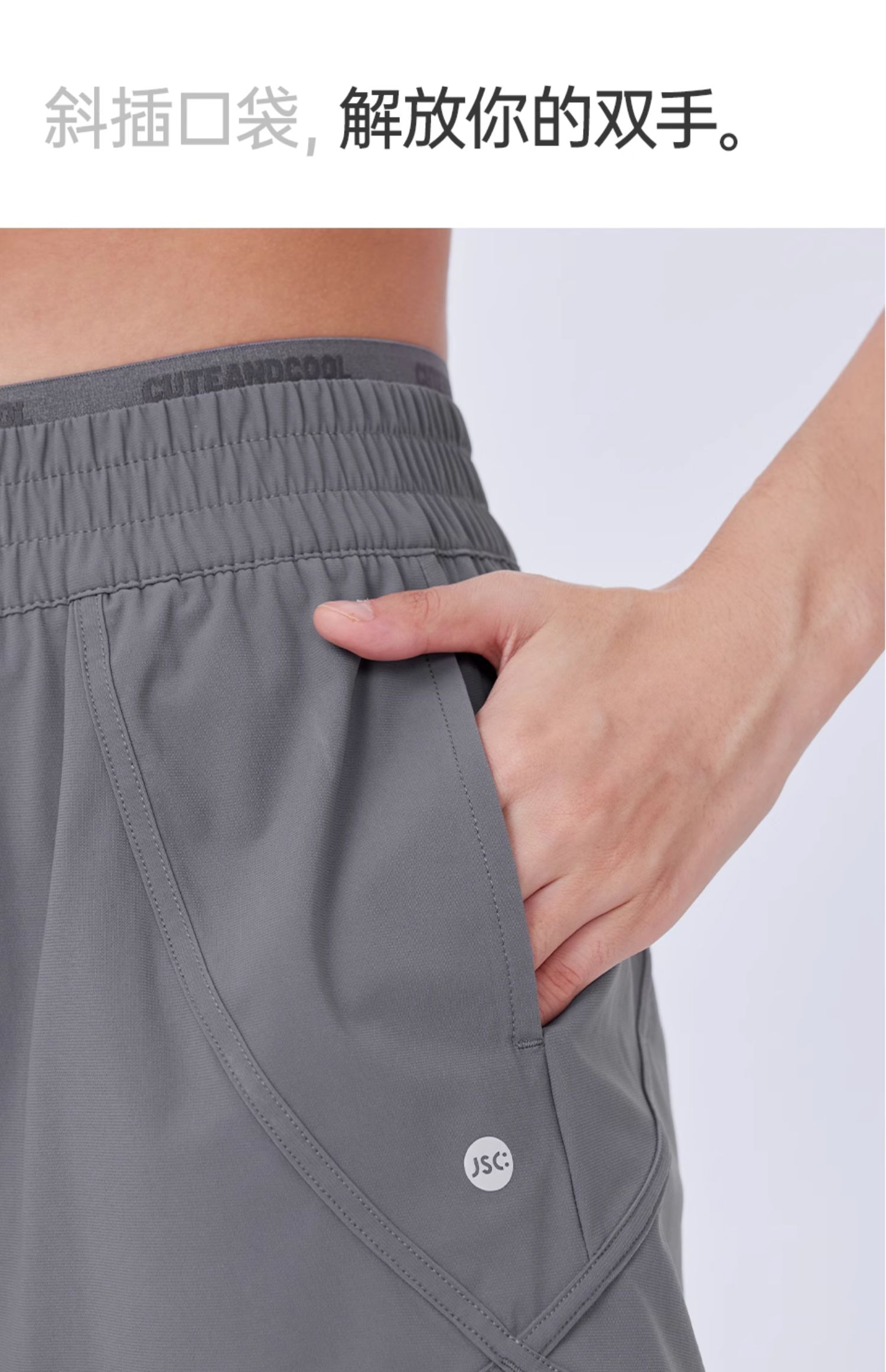 JSC假兩件防曬涼感健身褲運動帶口袋高腰提臀防走光戶外運動褲女